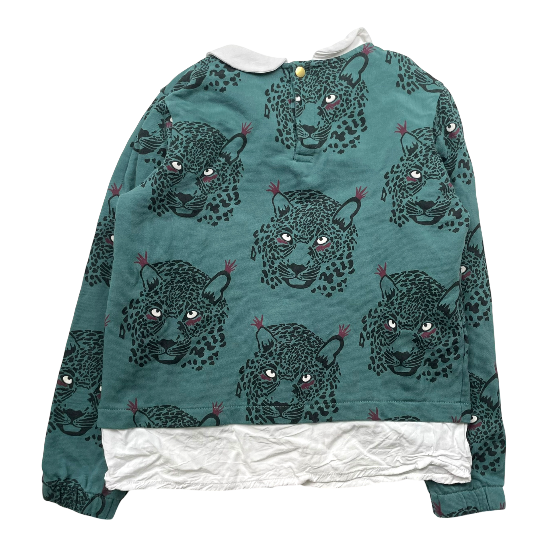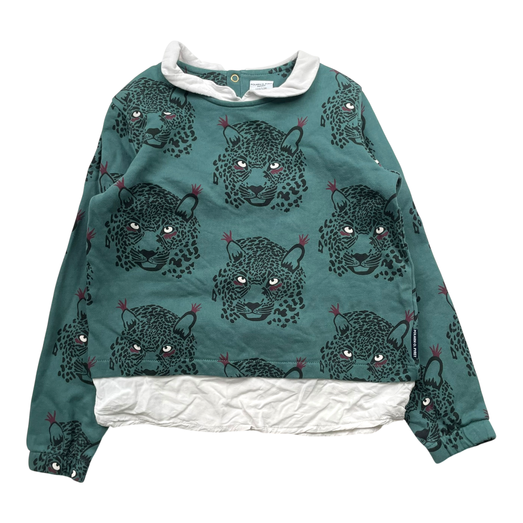 Polarn O. Pyret sweat shirt in lynx cat print. White collar and hemline details.