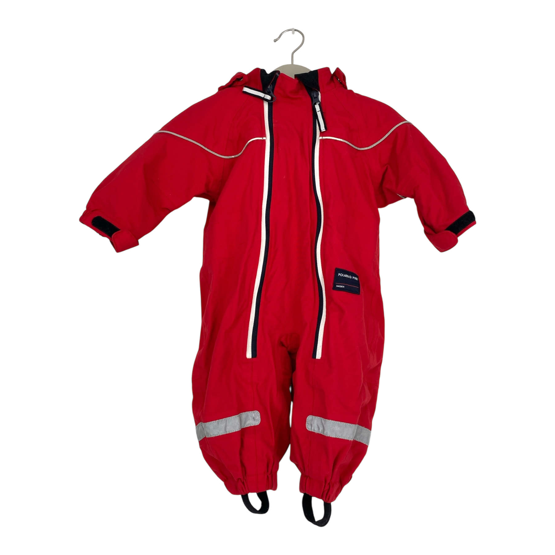 Polarn O. Pyret winter overall with removalbe hood, fleece inner lining, two zippers for easy dressing and foot loops.