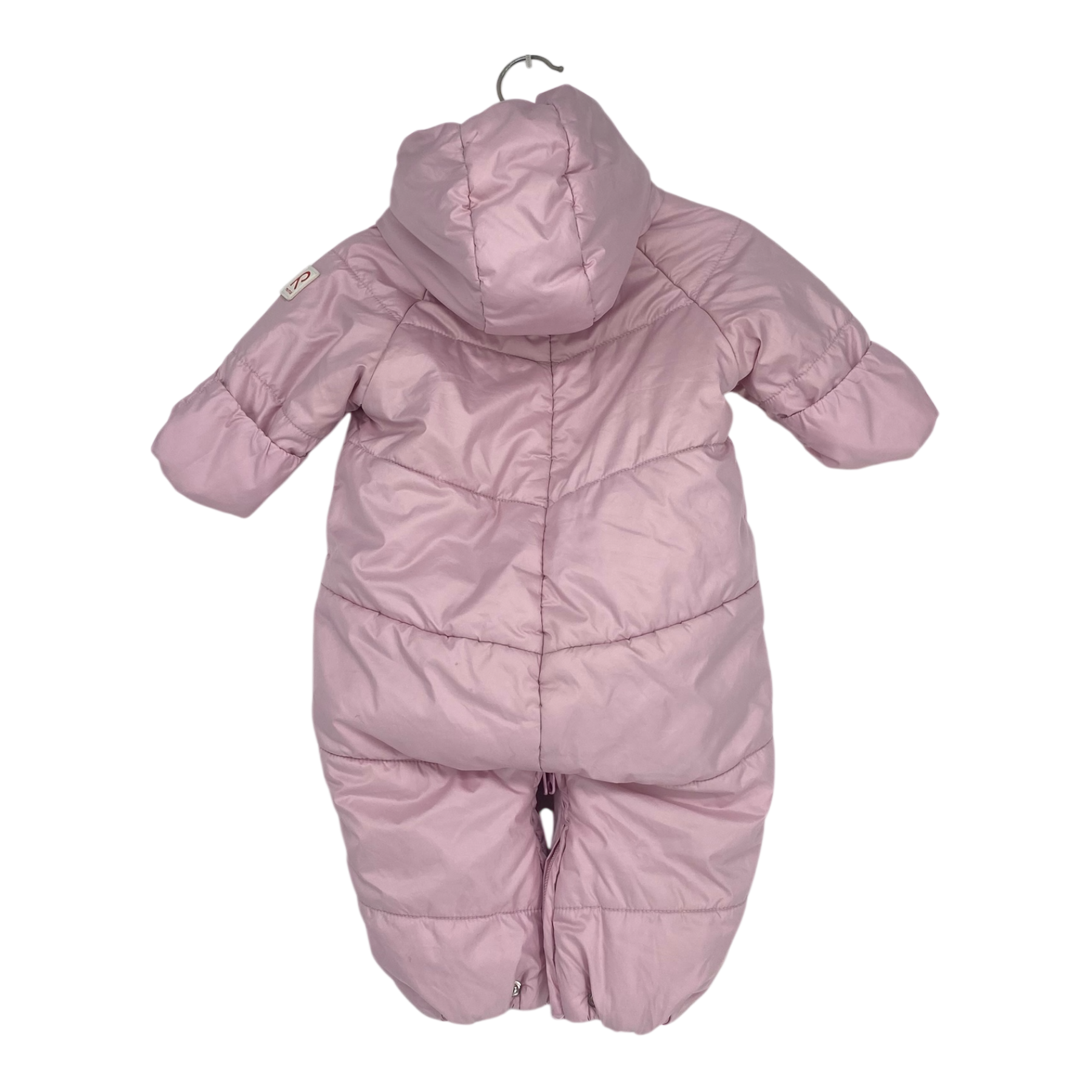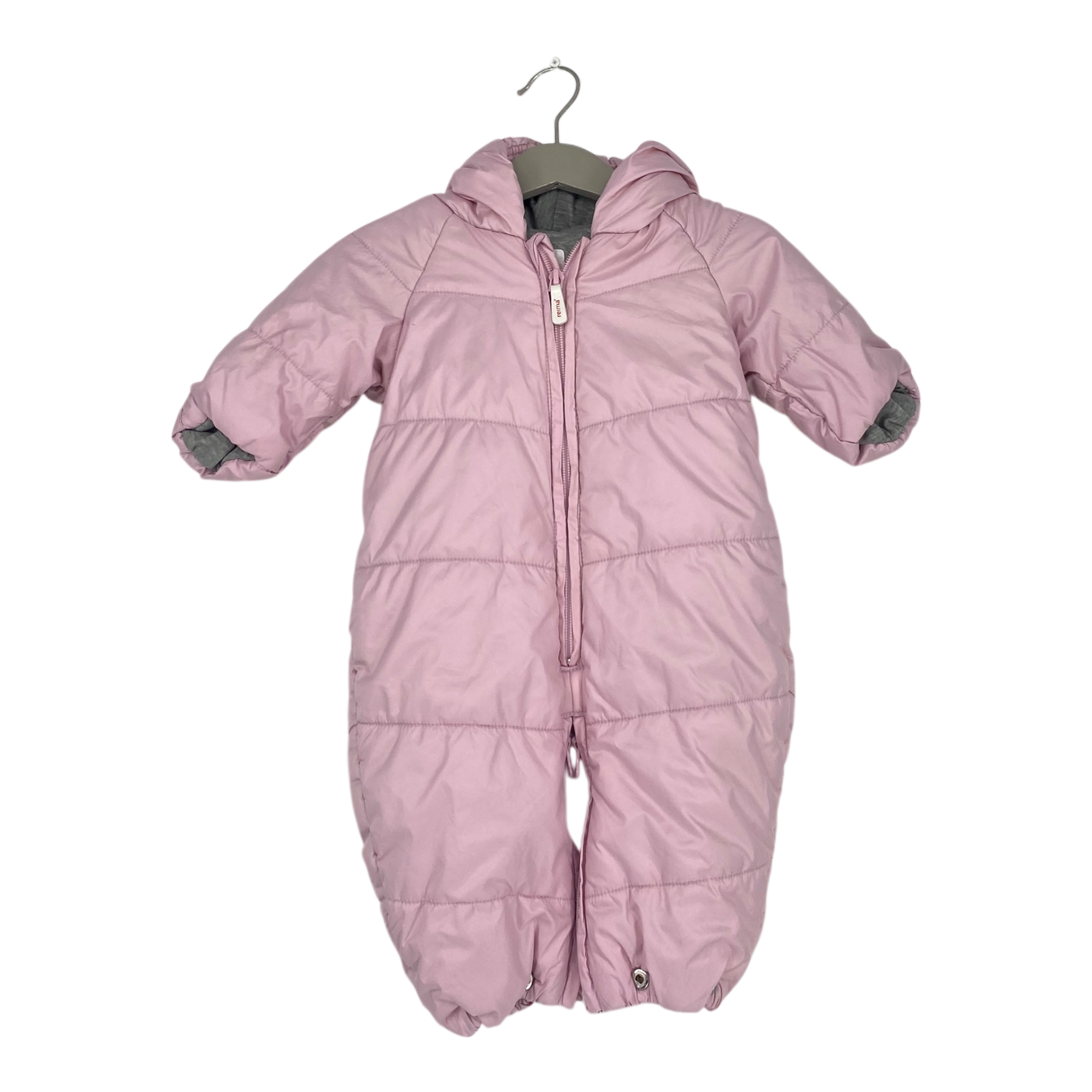 Reima baby padded overall with hood. A long zipper on the front and two leg zippers.