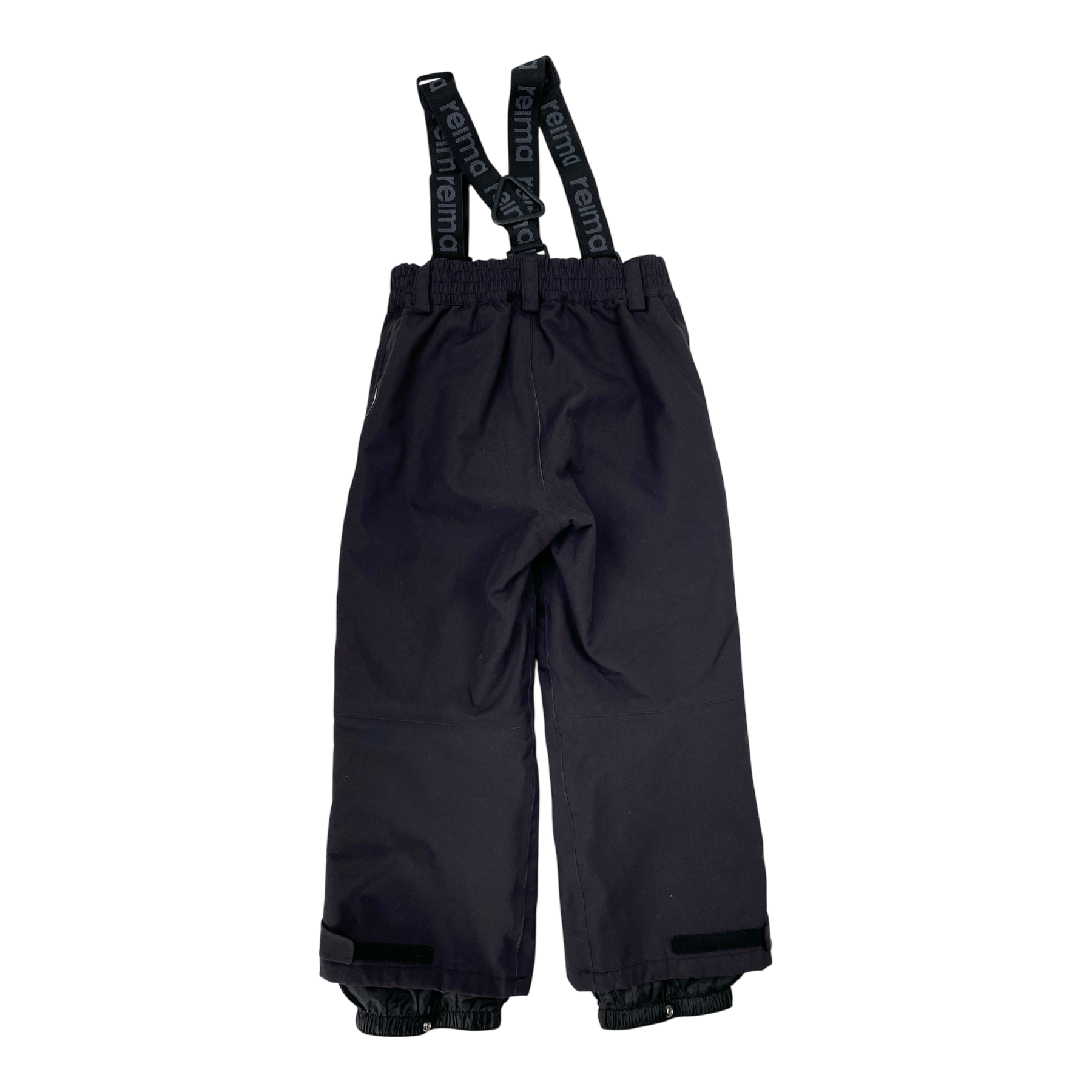 Reima Loikka outdoor pants with elastic and adjustable suspenders. Pants have a zip pocket, elastic waist, adjustable leg ends with snow locks.