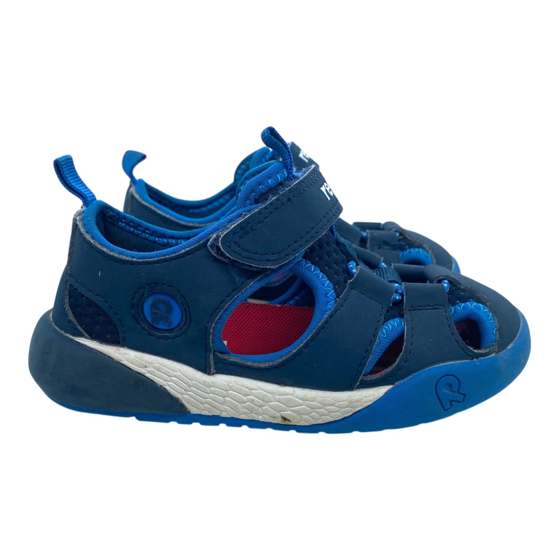 Reima Lomalla sandals with soft textile top part and a velcro strap for easy dressing.