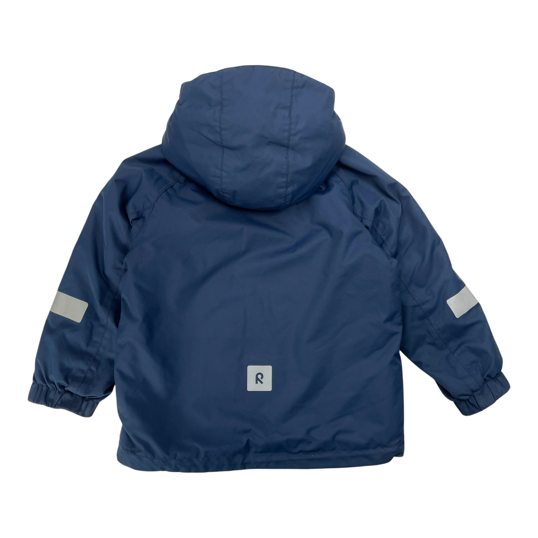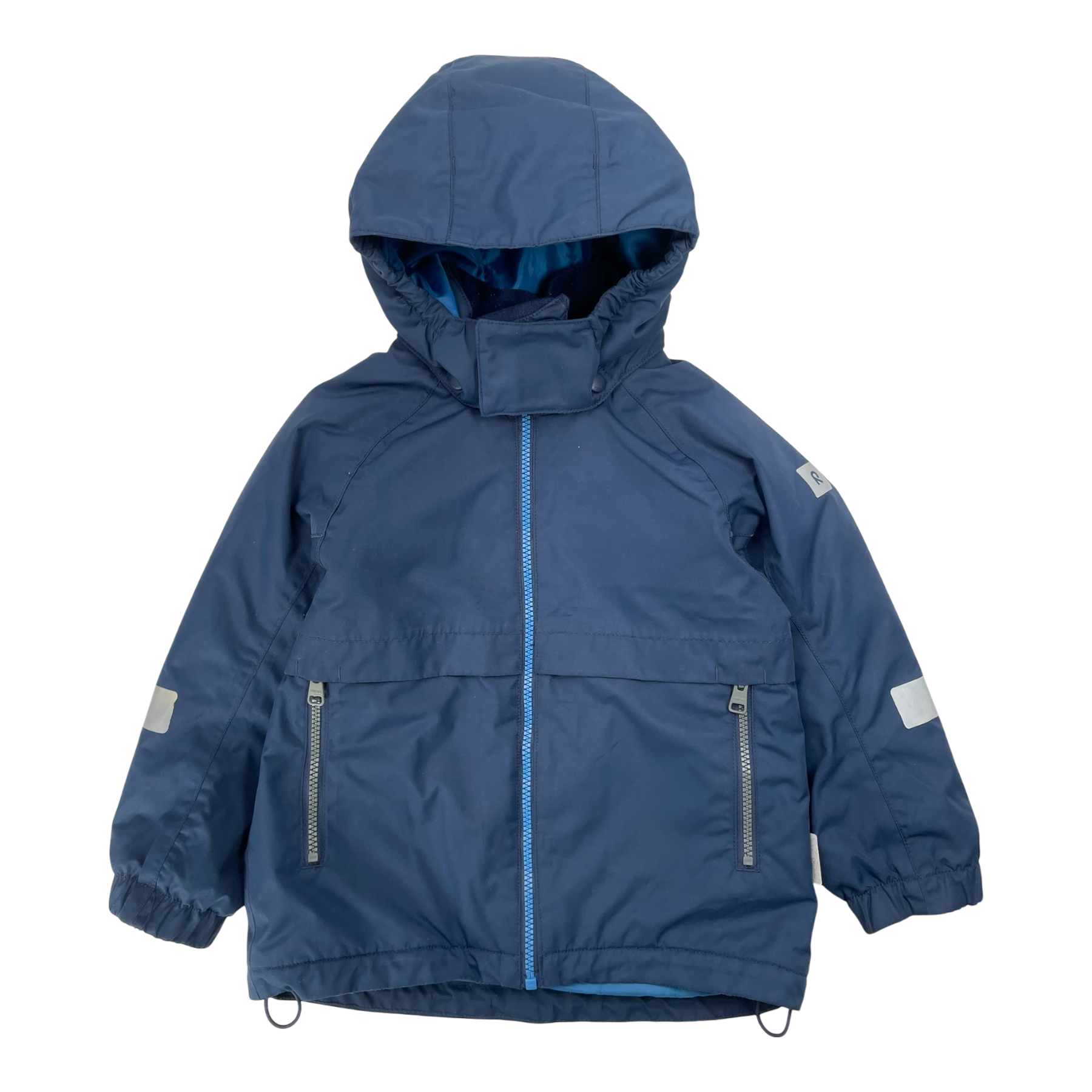 Reima Raisio winter jacket with detachable hood, two zip pockets, adjustable hem and reflective details. The material is originally wind- and waterproof.