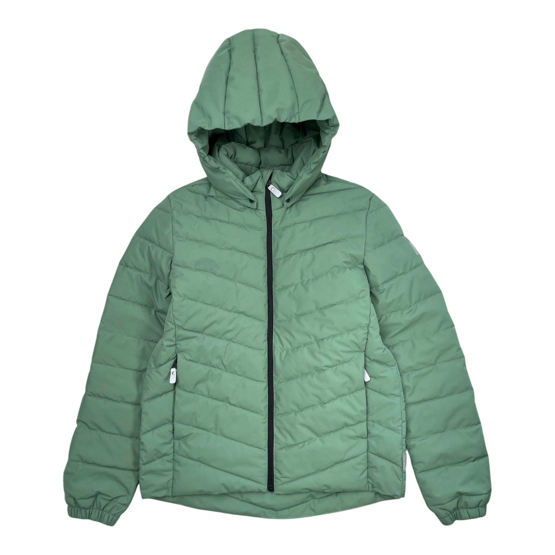 Reimatec Uumaja mid season jacket with side pockets, detachable hood and zip closure. the laundry tag is cut off.