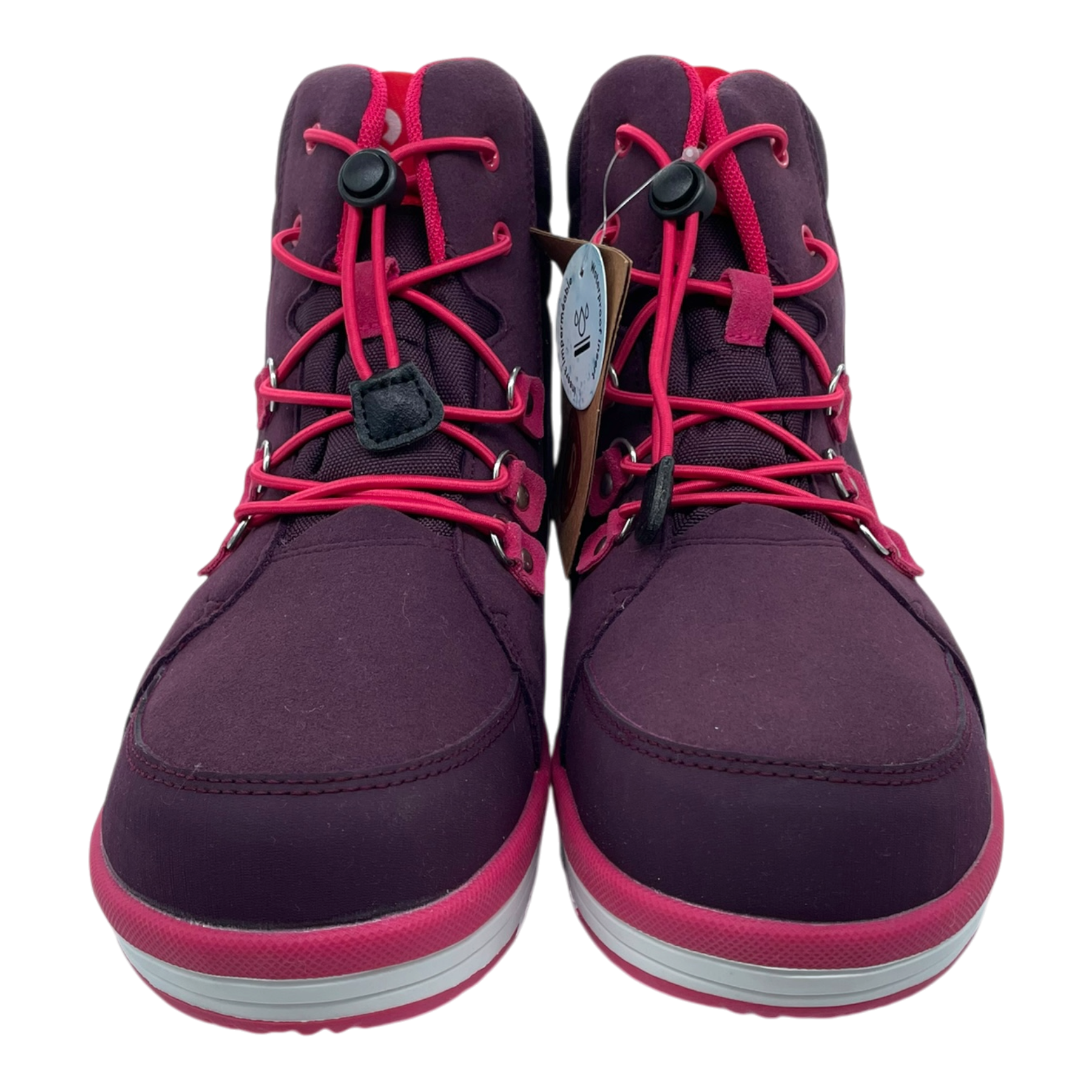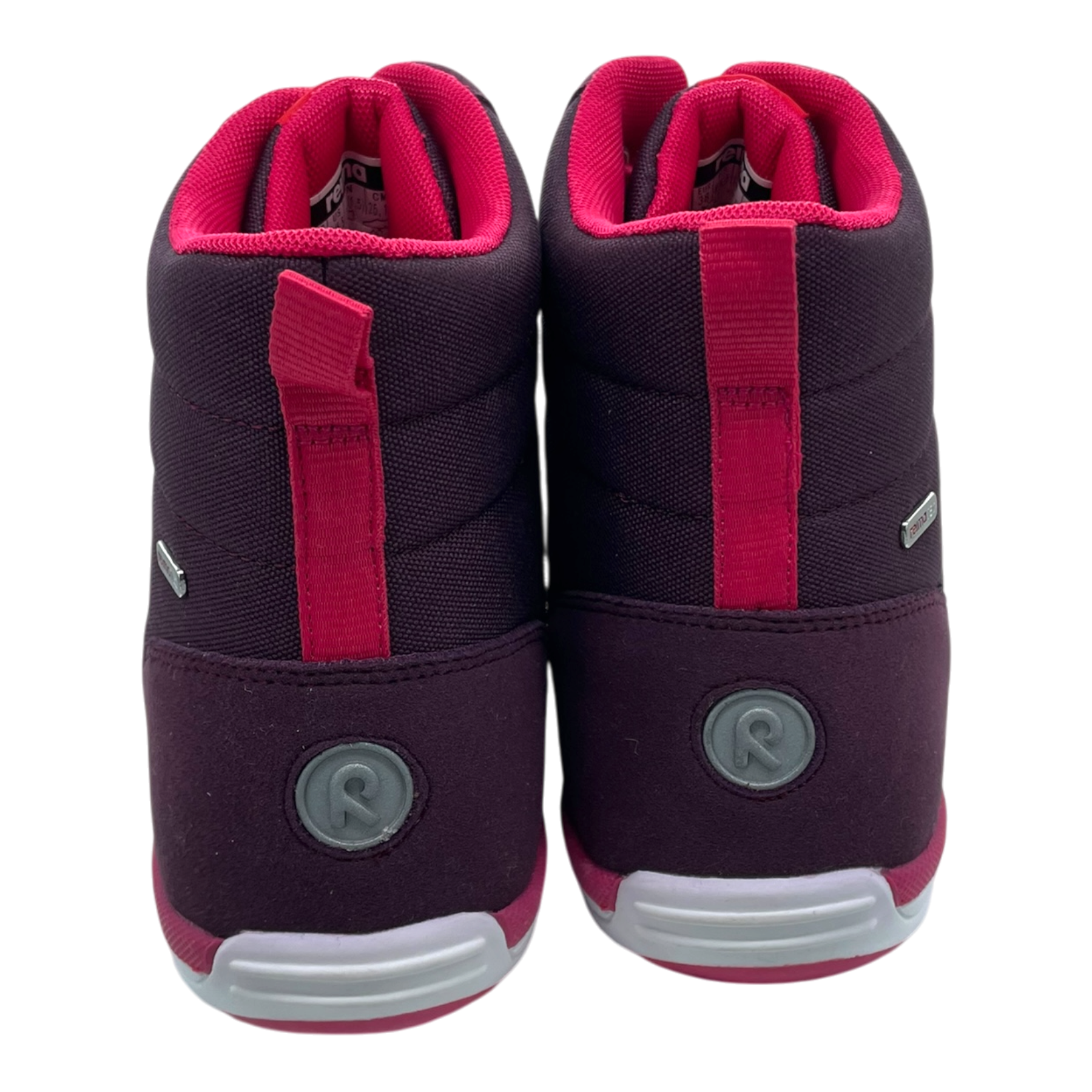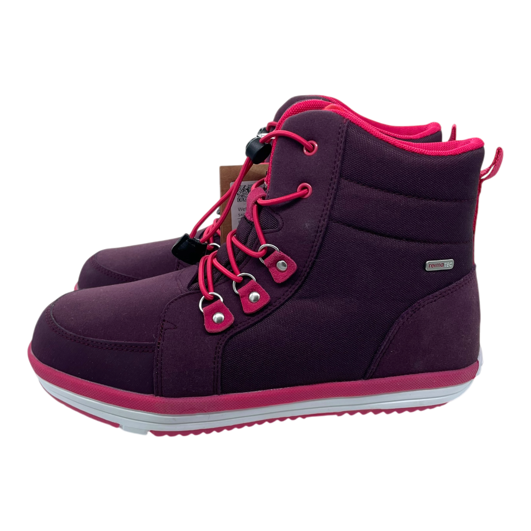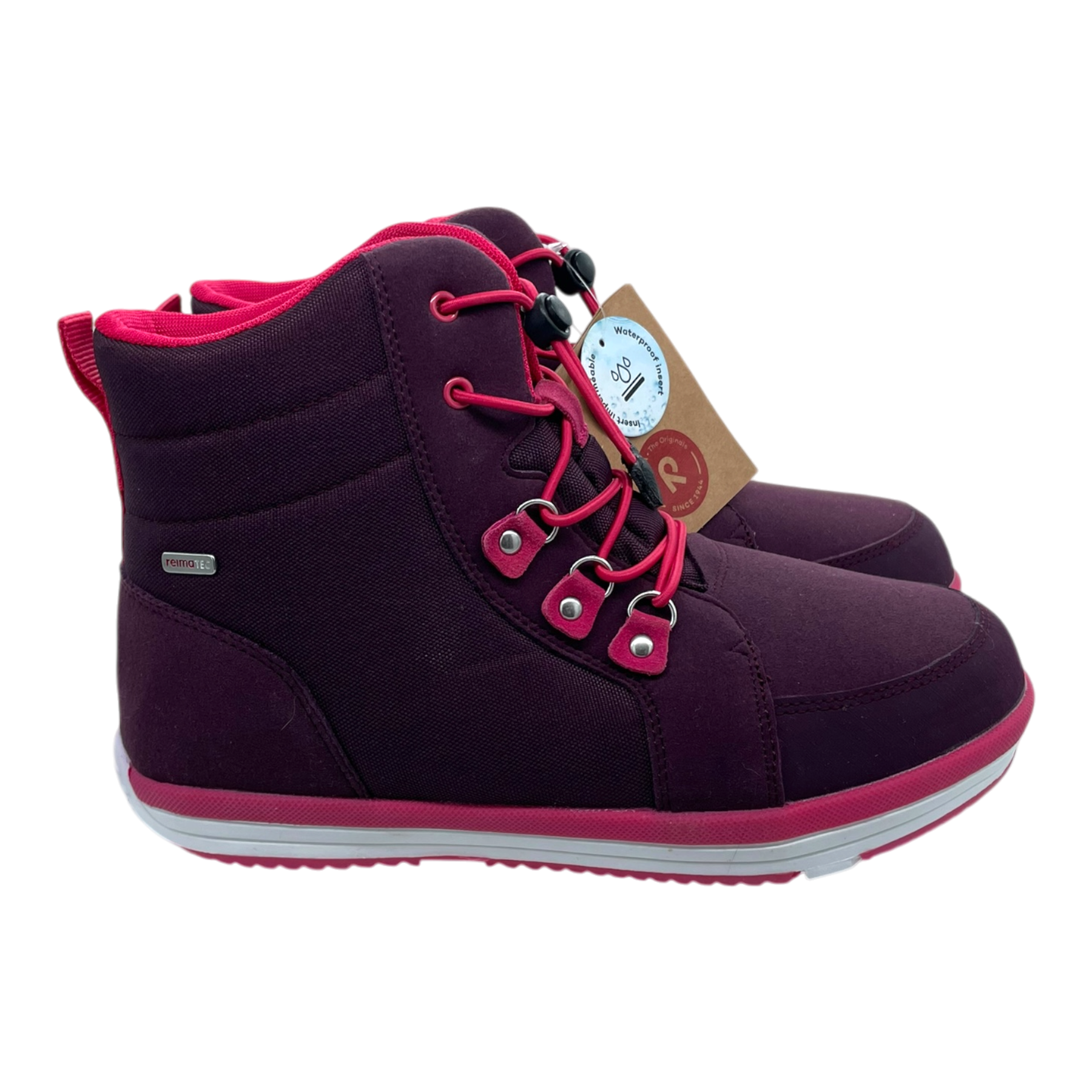 Reima Wetter waterproof boots for kids are equipped with a seam-sealed insert and mesh lining. The upper is made from a durable textile and the toes are reinforced with synthetic material. These boots for kids also come with easy-to-use elastic laces.