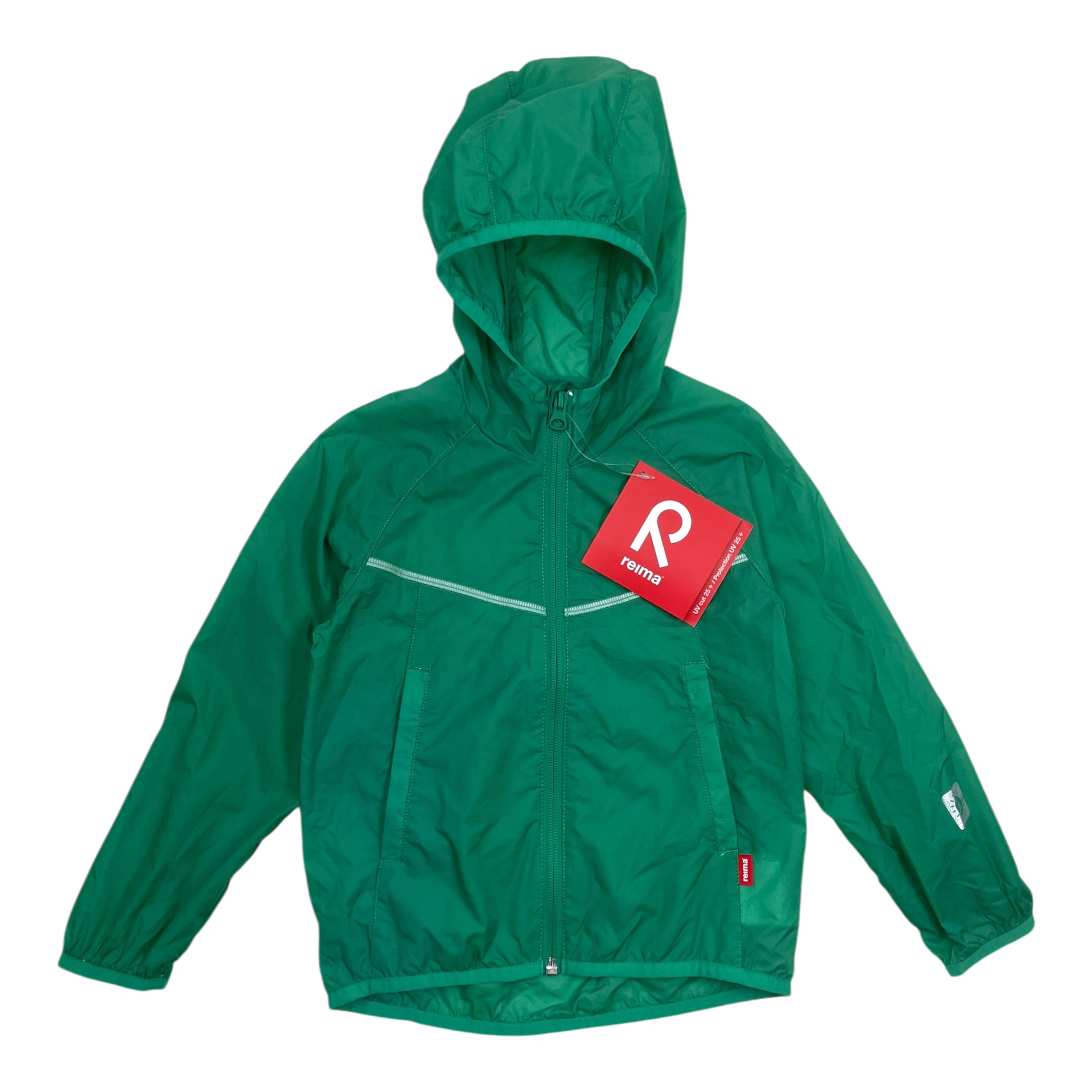 Reima windbreaker jacket with side pockets and full length zipper. The material is originally windproof, water- and dirt repellent. UV 25. Tags still attached.