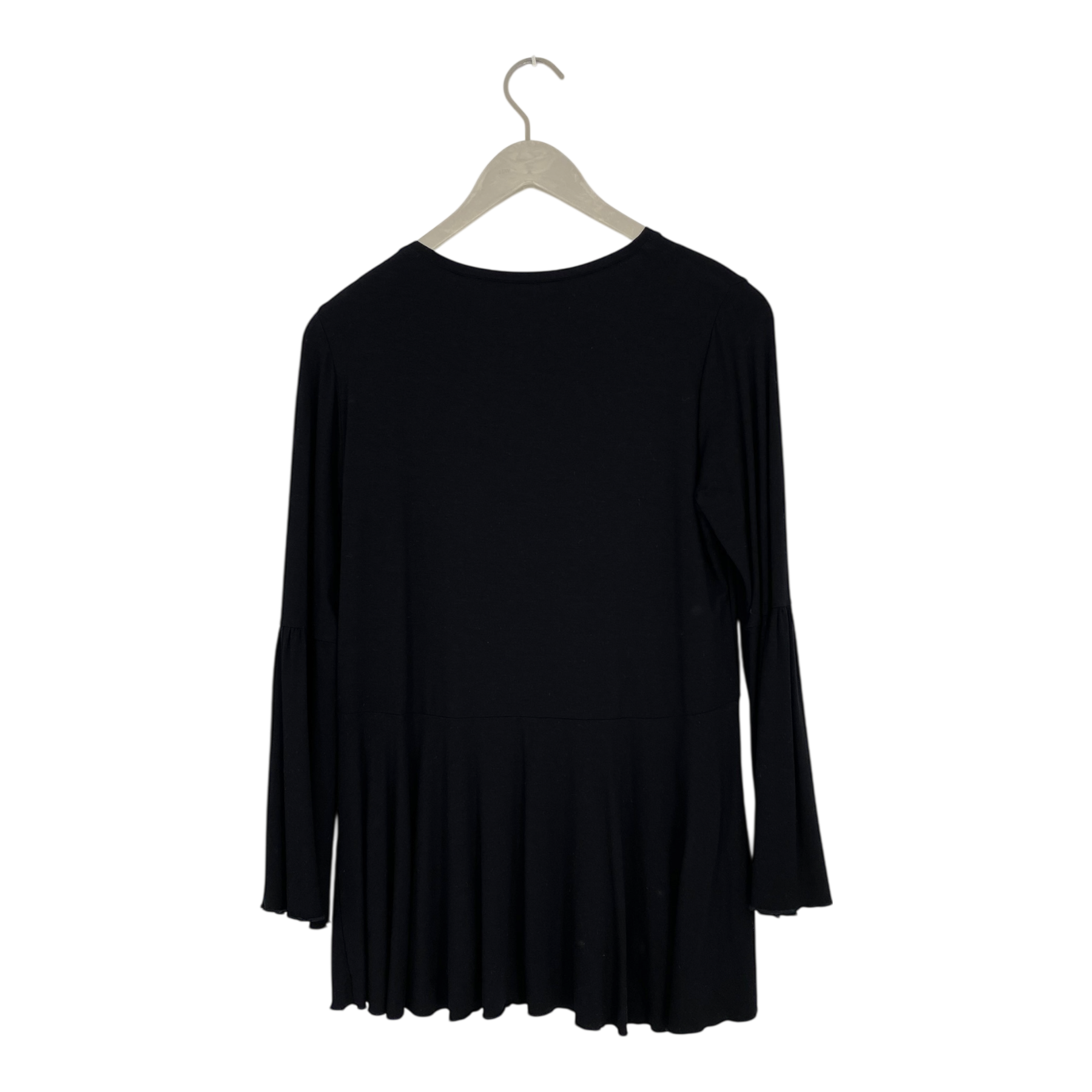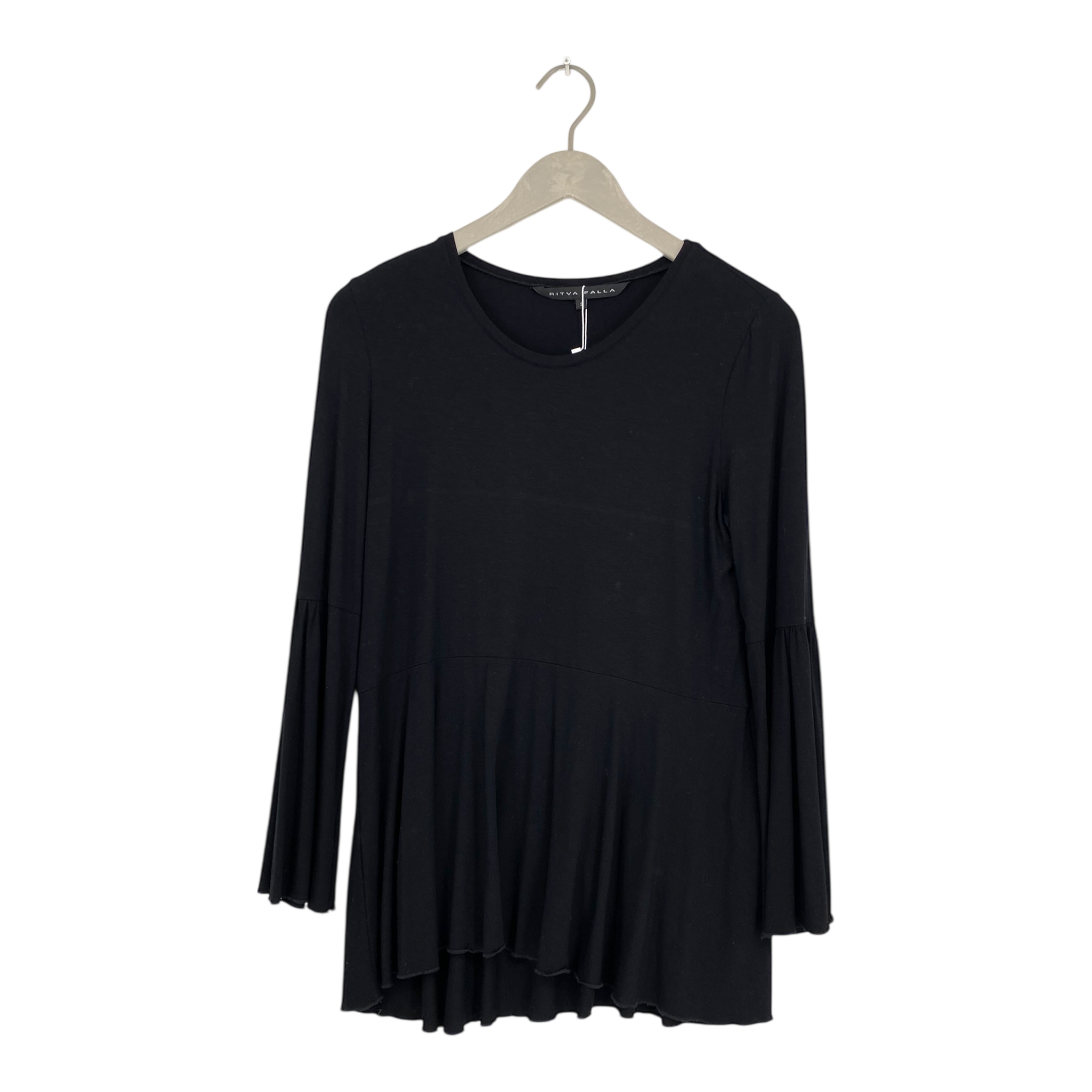 Ritva Falla tricot tunic shirt with frilled long sleeves and frilled hem.