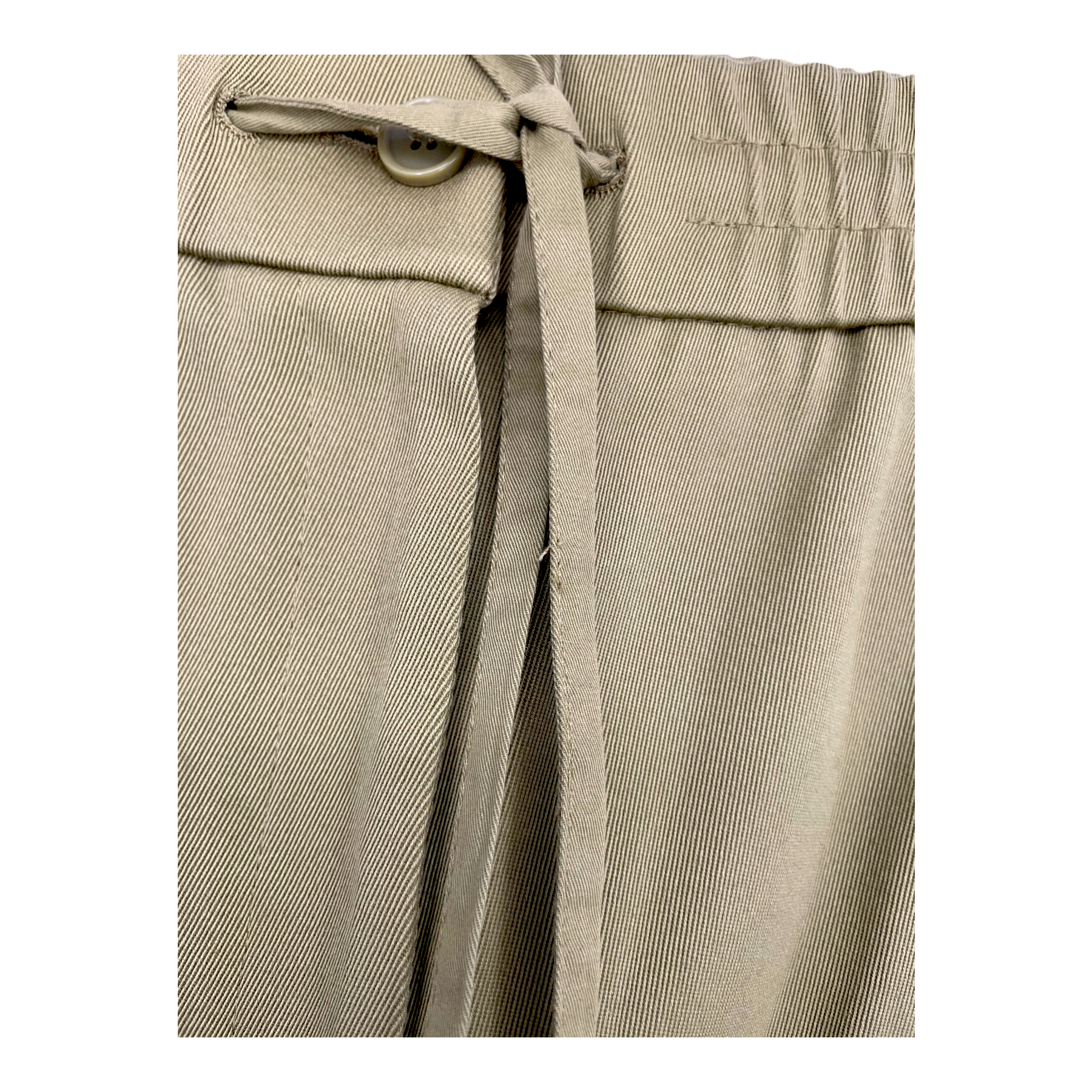 COS wide leg culottes pants with button, zipper and string closure on front, an elastic waist and side seam pockets.