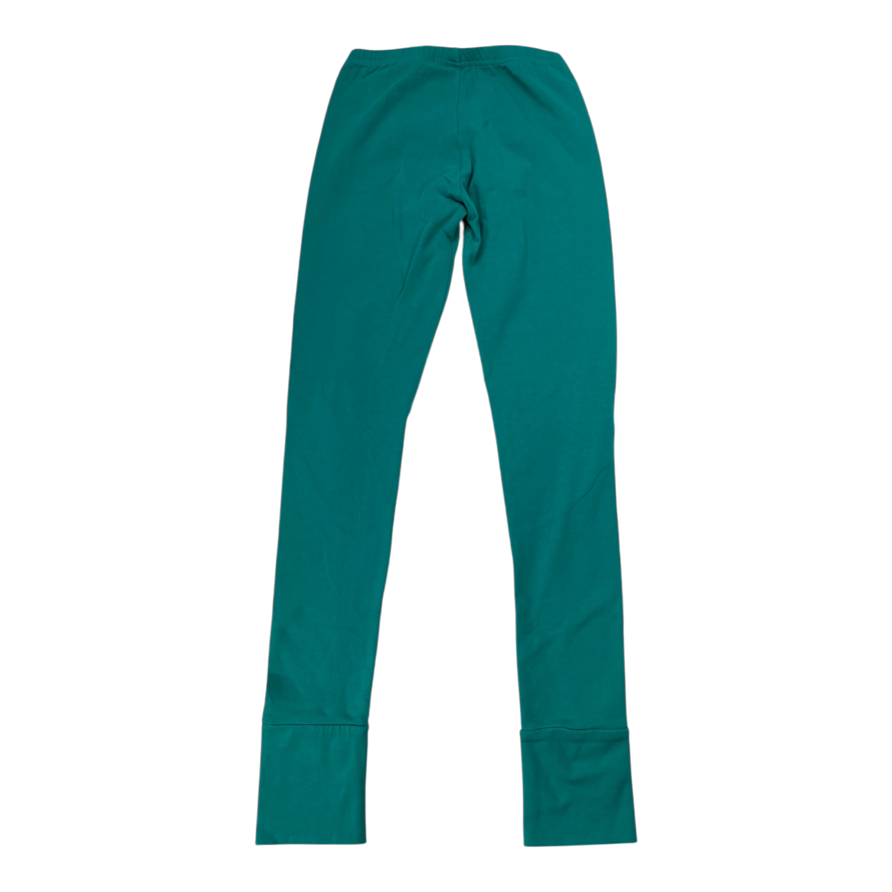 Papu leggings with contrast knee patches. Made from elastic organic cotton that feels comfortable to wear. Foldable leg ends for a longer fit for one child.