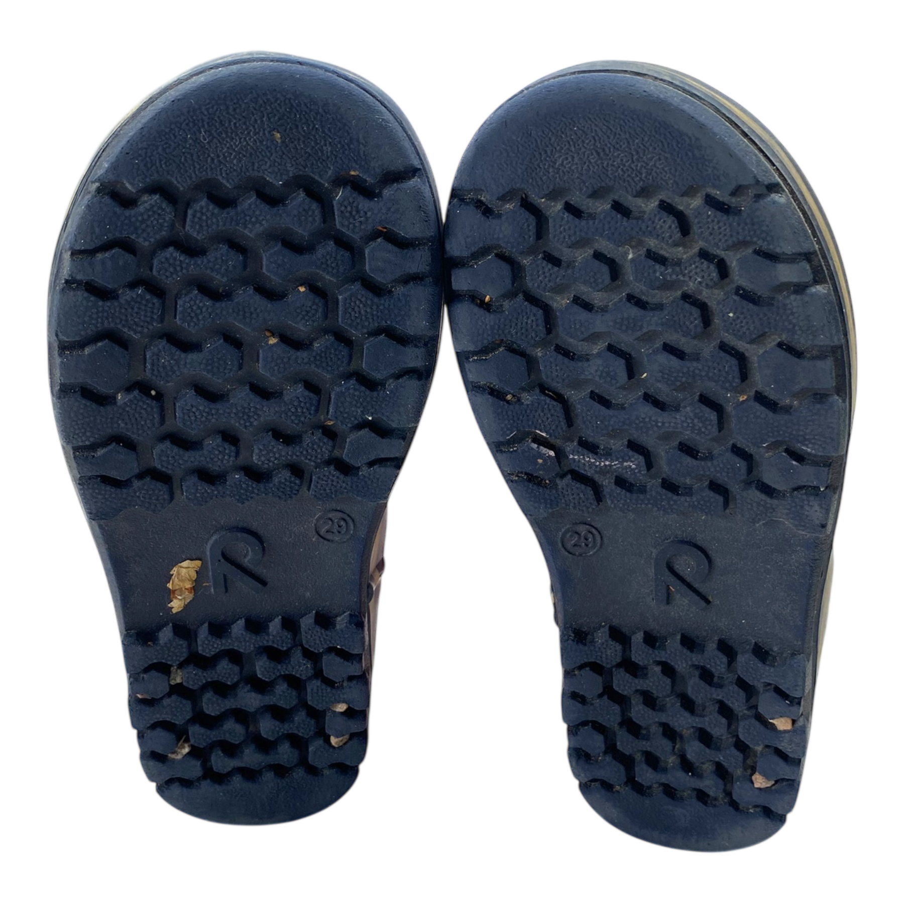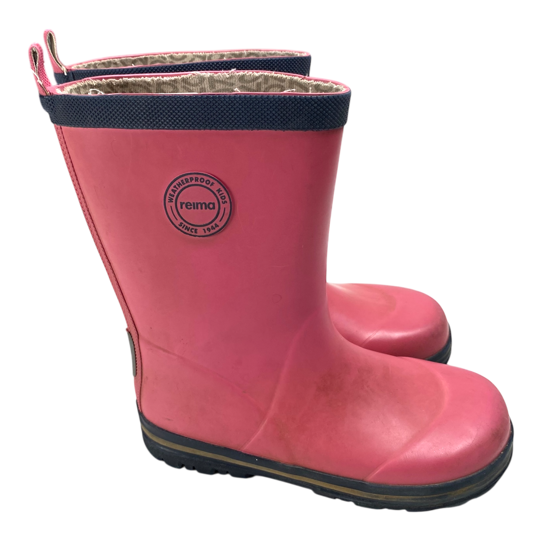 Reima Taika classic cotton-lined kids' rubber wellies. The shaft height is designed to fit your child based on their age. The item has some staining.