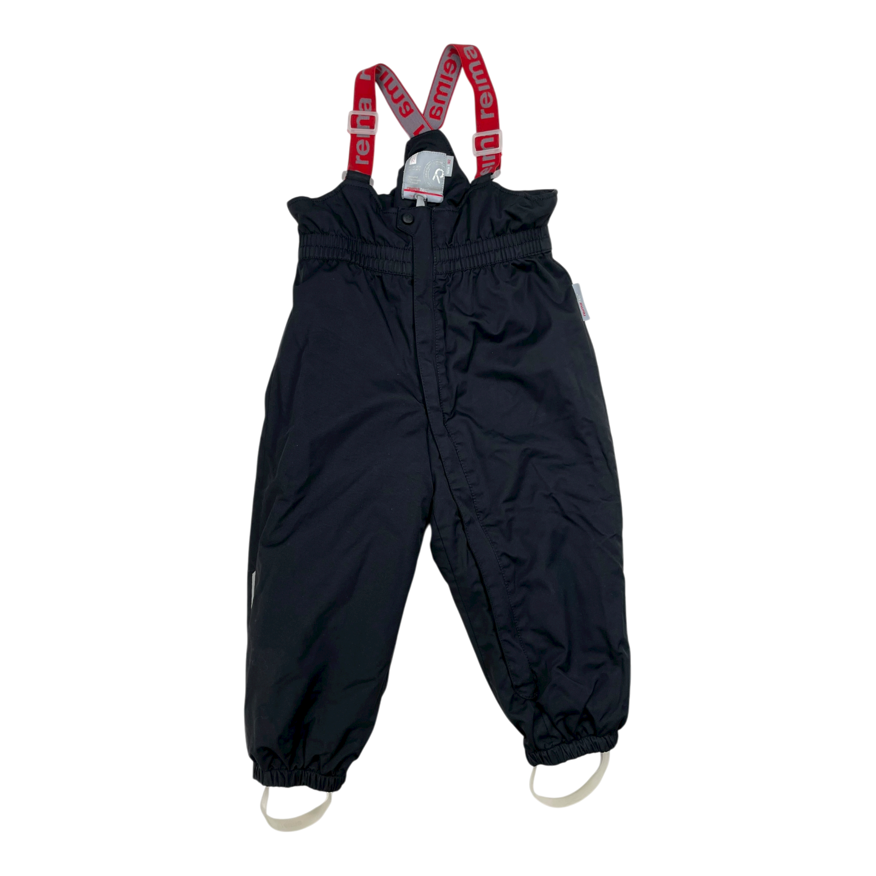 Reima winter outdoor pants with elastic suspenders, zip closure, and durable foot loops. The material is originally waterproof up to 10,000mm water column, has warm insulation, yet is breathable.