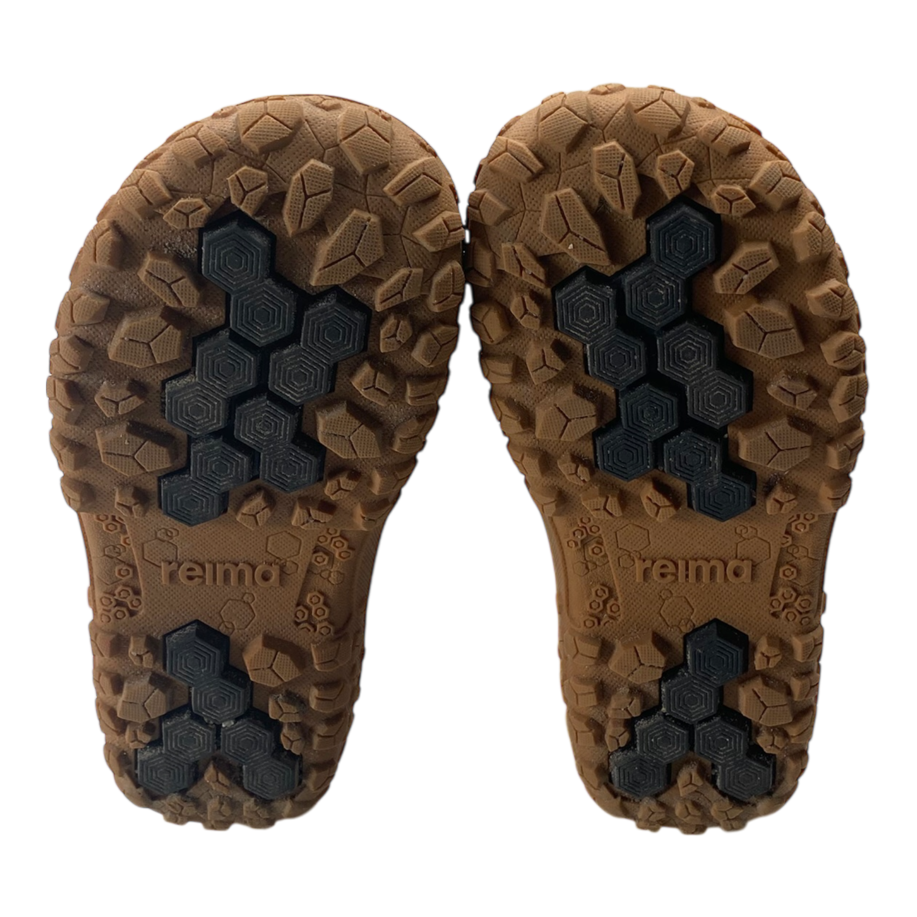 Reima Loskari kids winter duck boots has a waterproof galosh section in durable thermoplastic rubber. Protects from slush on wet days. The item has some signs of use.