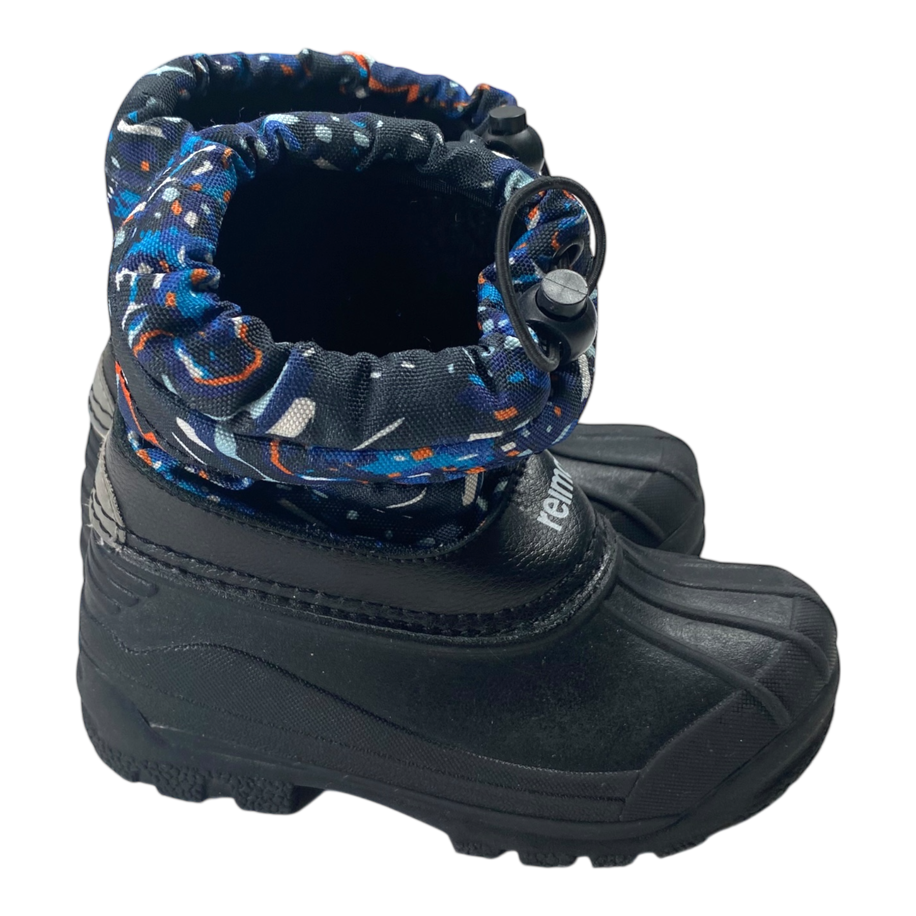 Reima kids' Nefar duck snow boots equipped with a completely waterproof galosh section in durable thermoplastic rubber for protection from slush on wet days.