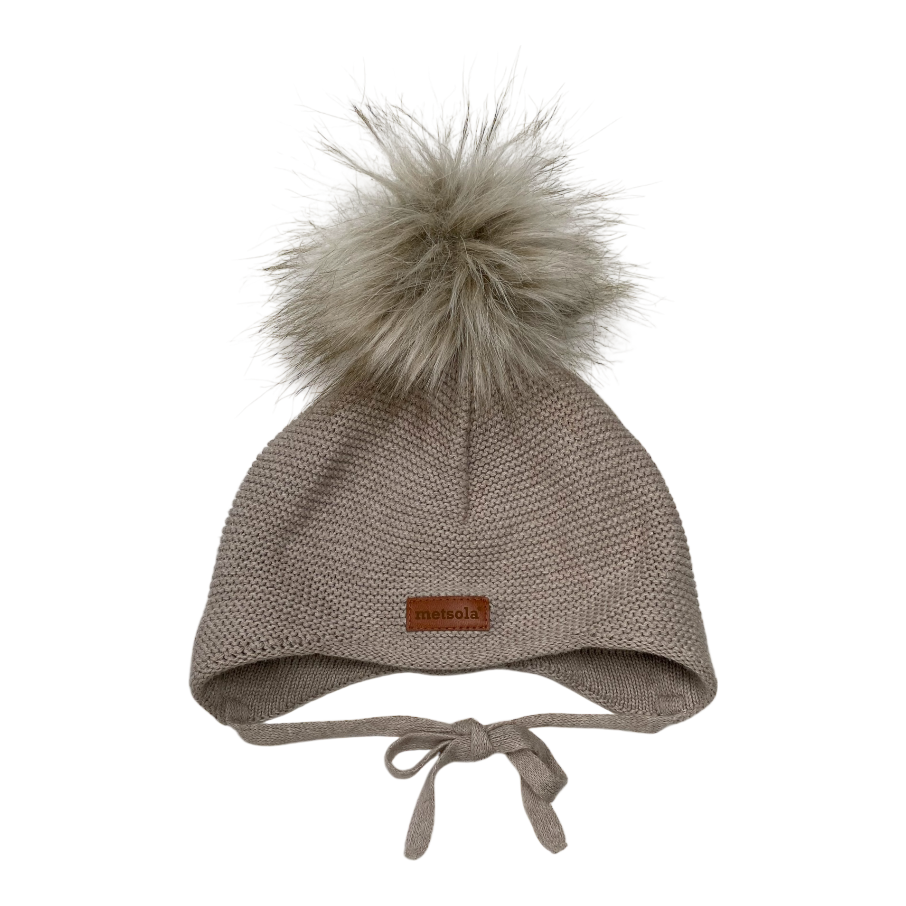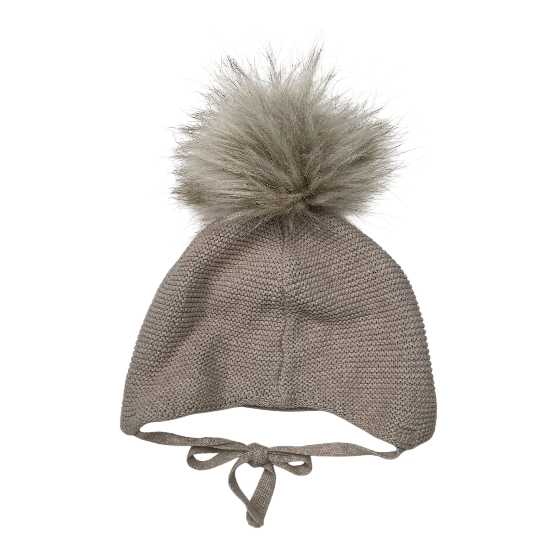Metsola cotton knit fur pom beanie, beige | 6-12m