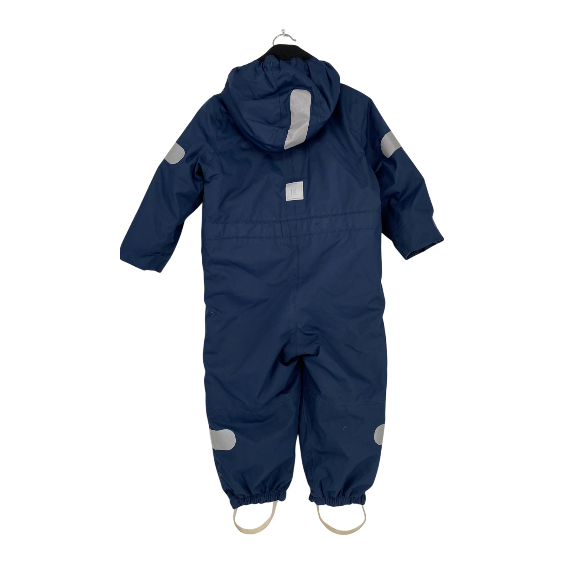 Reima Marte Mid winter overall is inspired by Reima's '70s-style collection. The smooth lining makes putting it on easy. Overall has detachable hood, adjustable hood, and durable foot loops. Two flap pockets and big reflective details finish off the retro look.