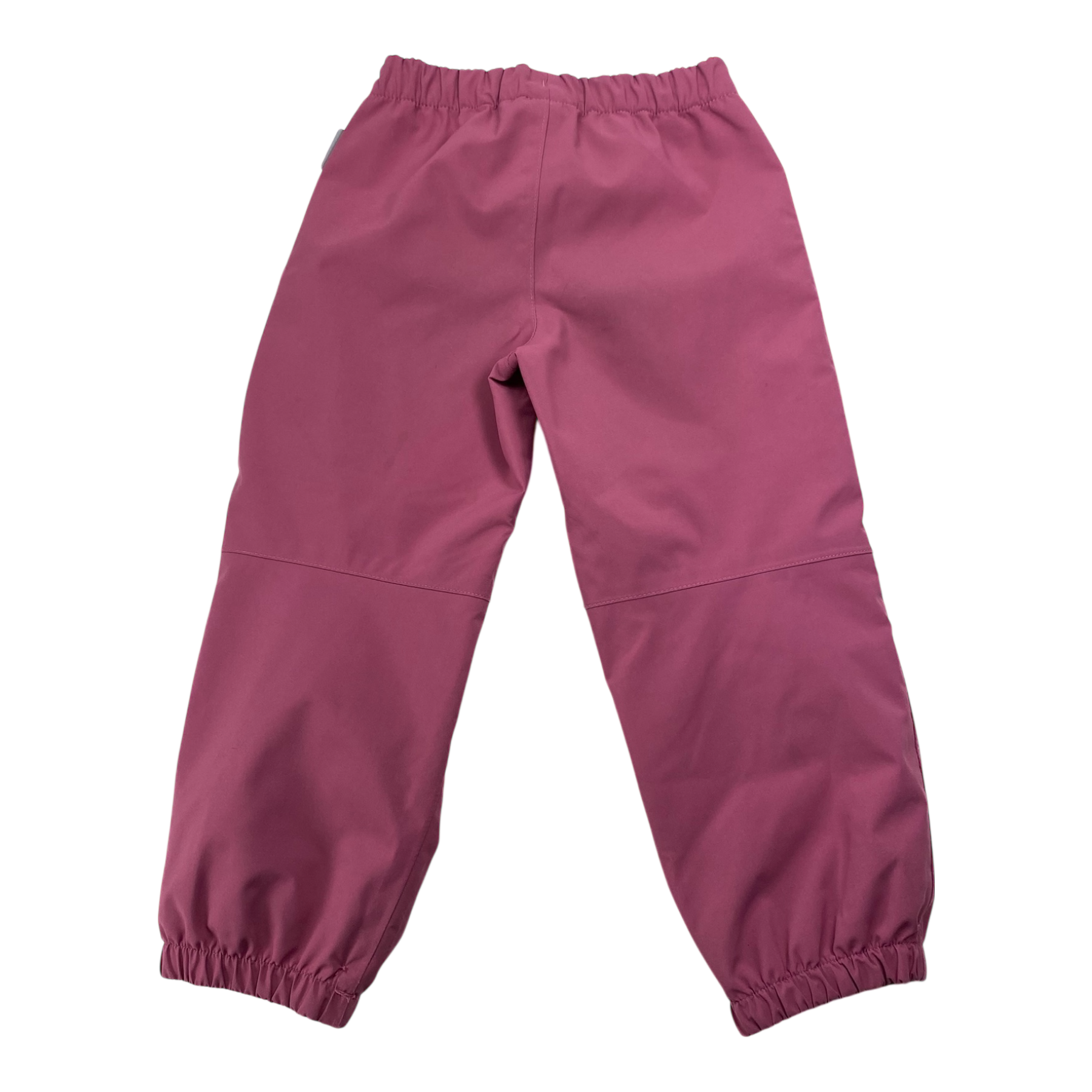 Reima Kaura midseason outdoor pants. with an elastic, adjustable waist, durable foot loops and reflective details on the sides. The material is originally waterproof up to 10,000mm water column, yet breathable.