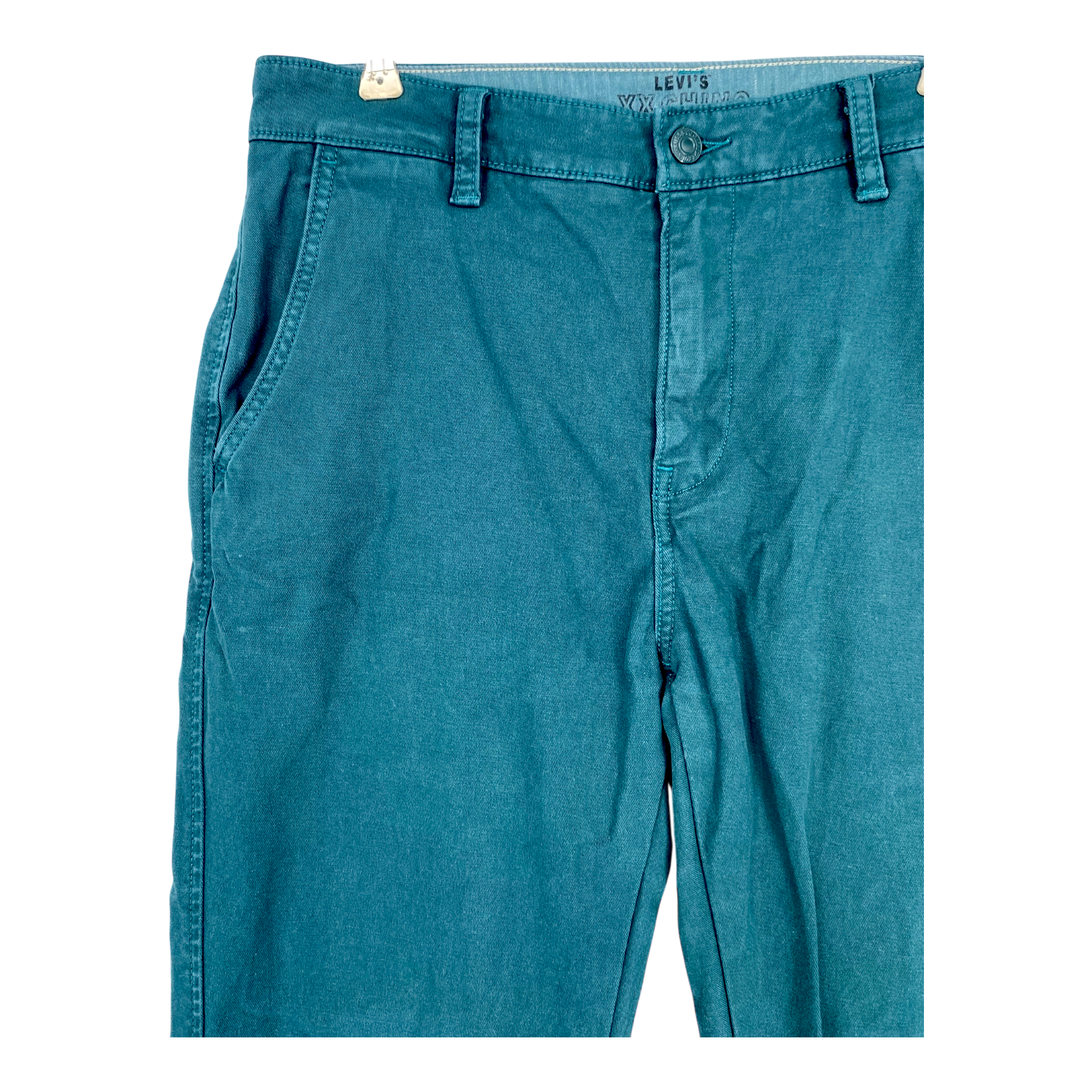 Levi's XX chino jeans in dark green with hidden safety pockets and three point belt loops. The item has faded seams as shown in the pictures.