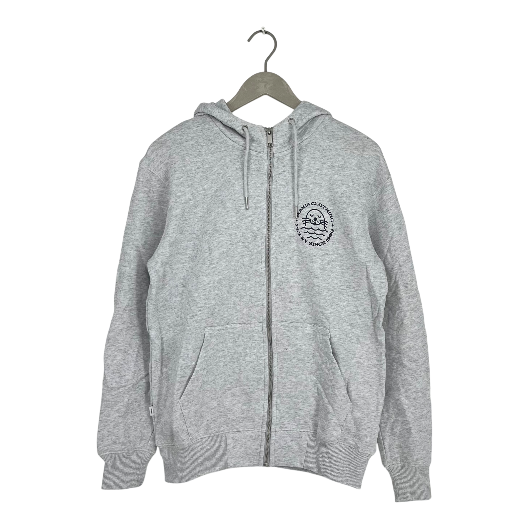 Makia long sleeve Elvsö hoodie sweatshirt is an athletic inspired hoodie with a zipper closure in the front.