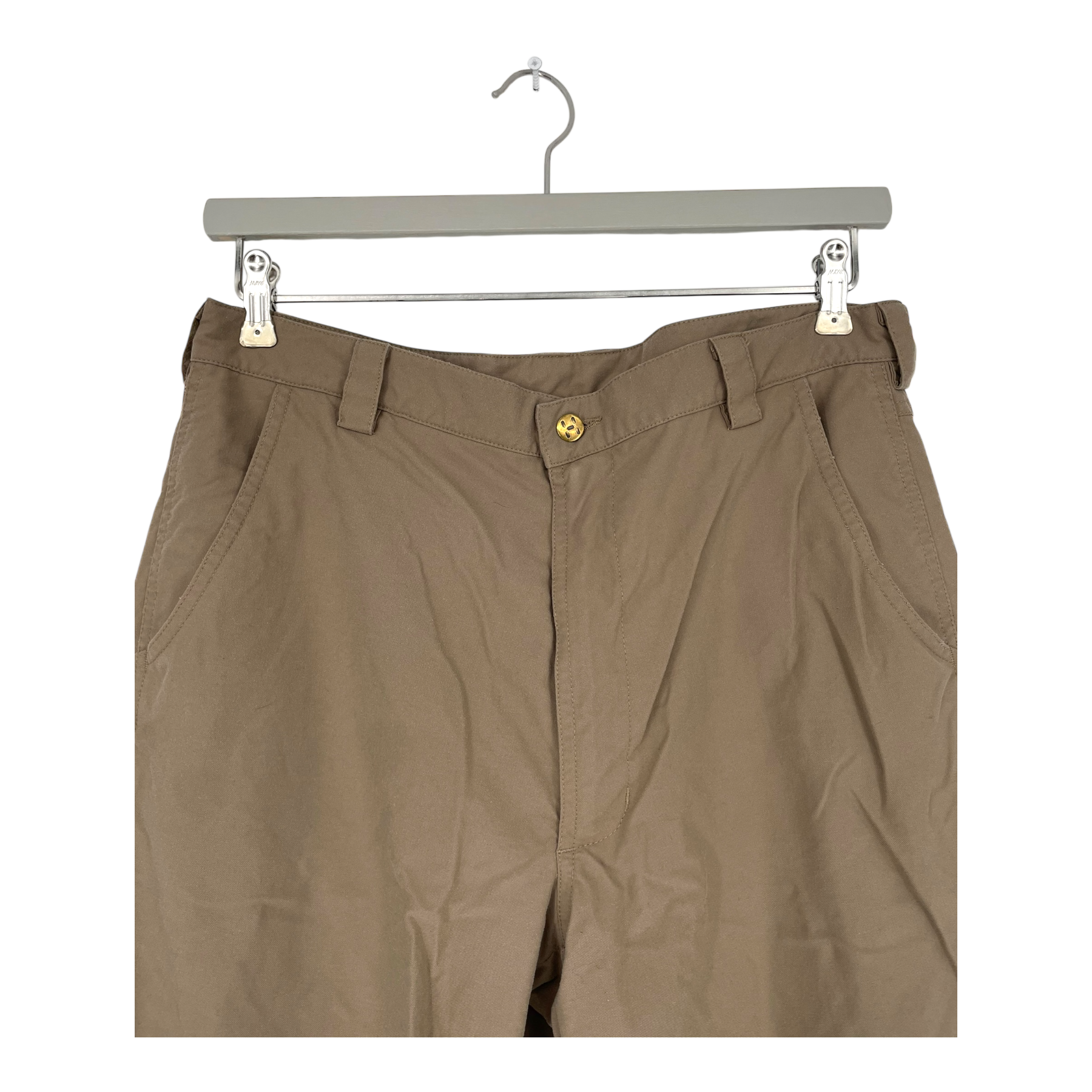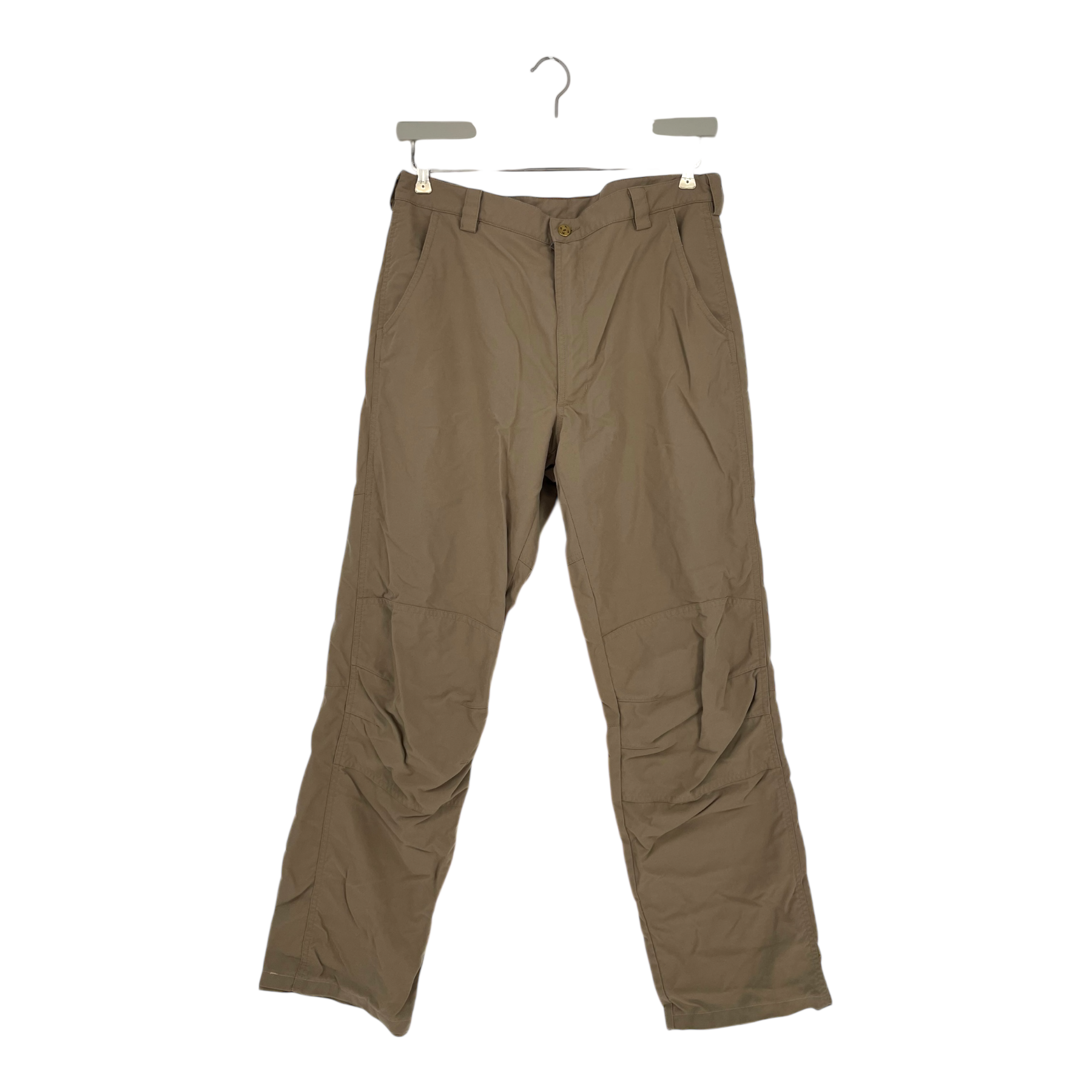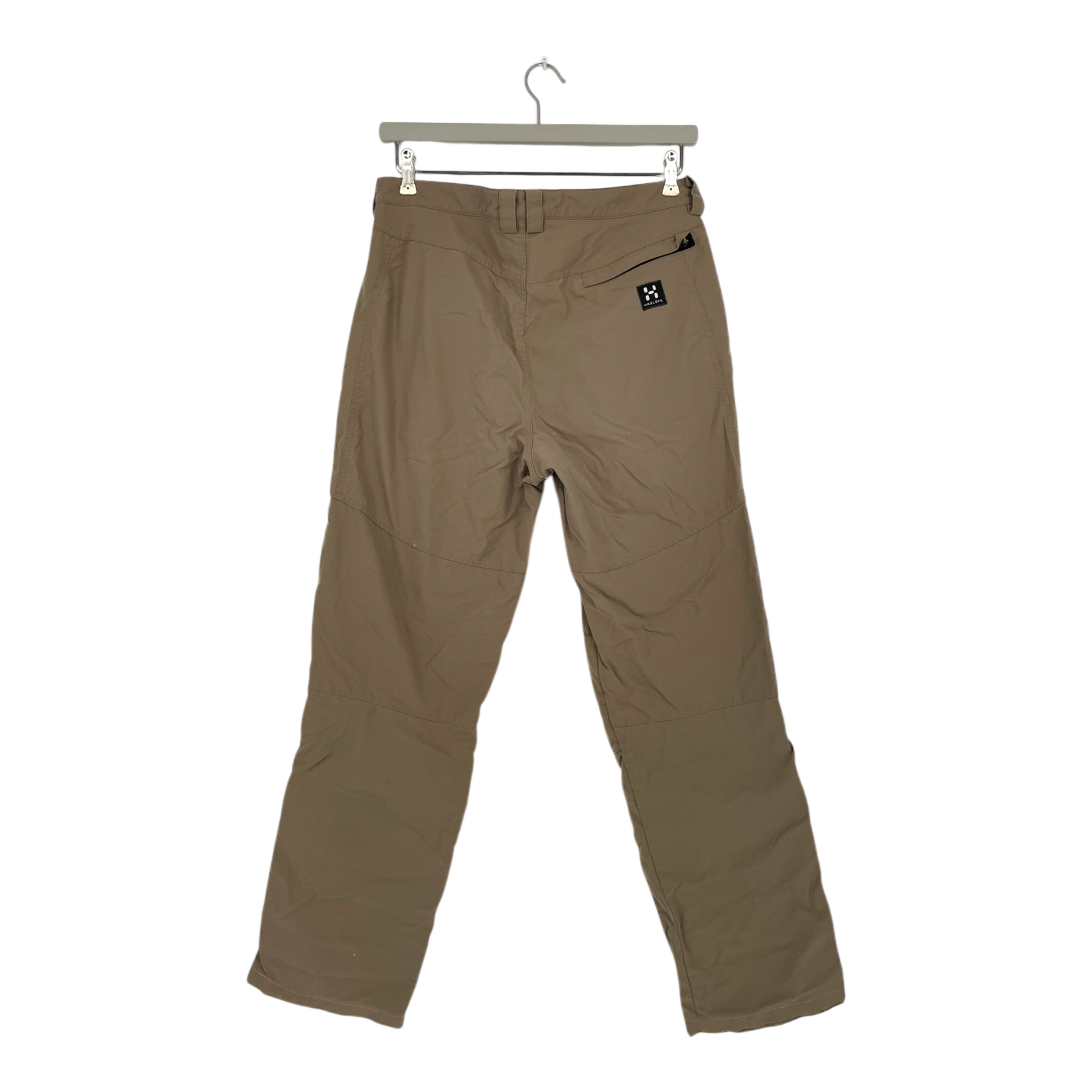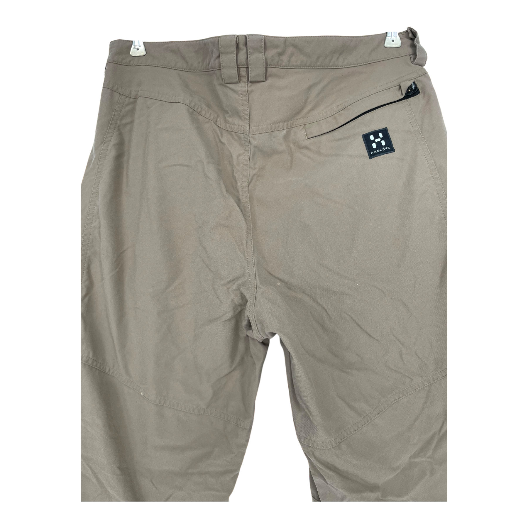Haglöfs woven pants with pockets on the sides and a zippered pocket on the back. There is some very light pilling and some light stains as shown.