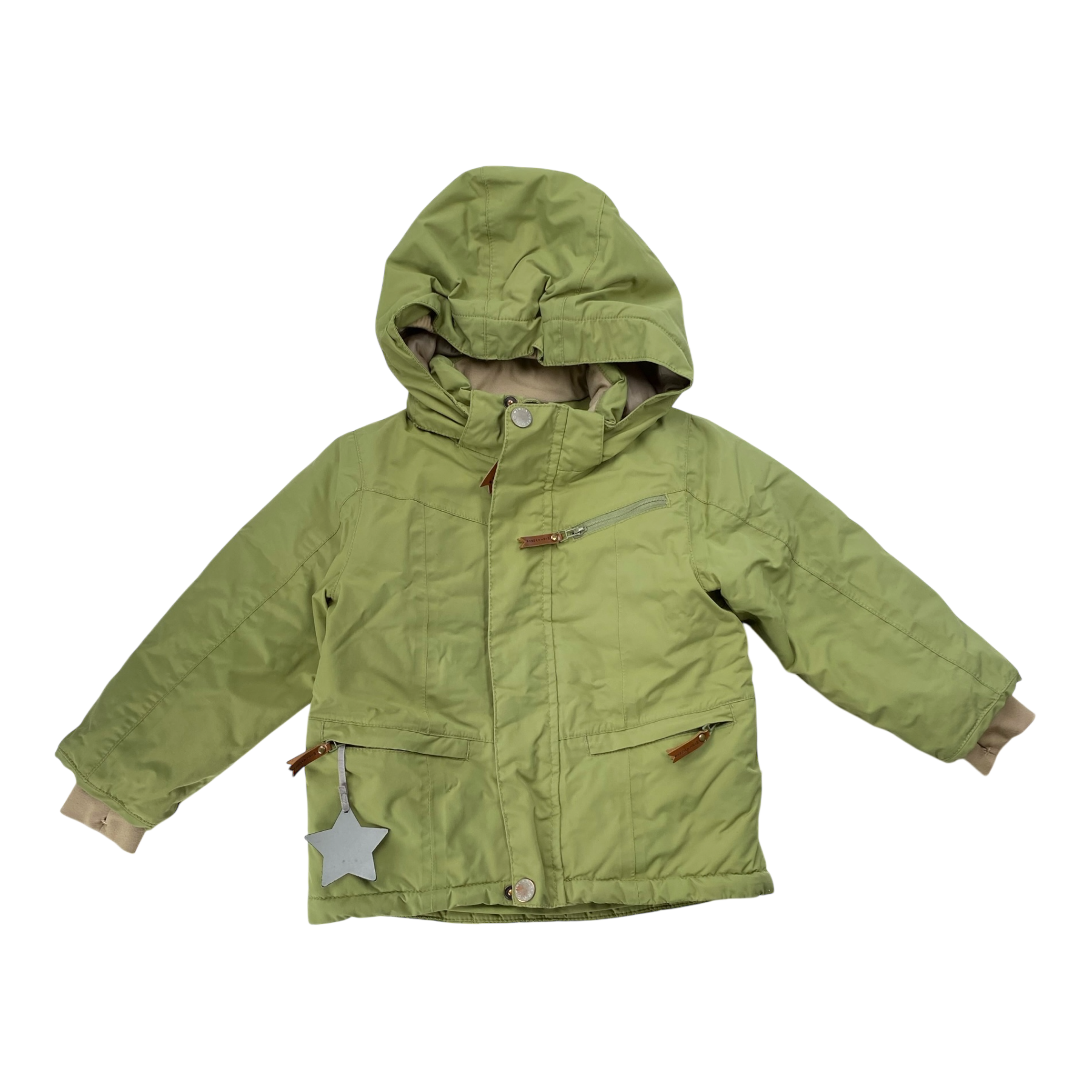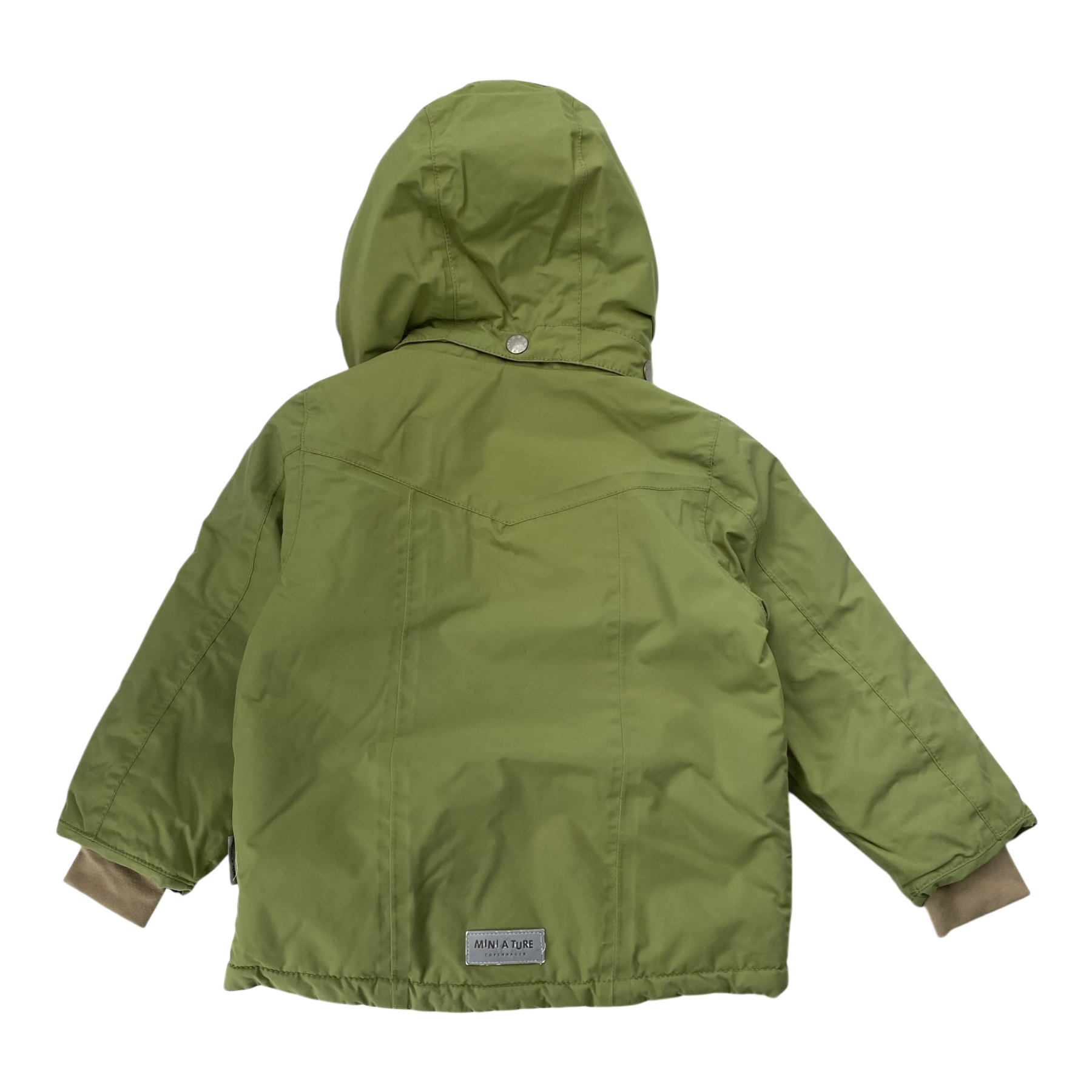 Mini A Ture winter jacket with a removable hood and pockets on the front.