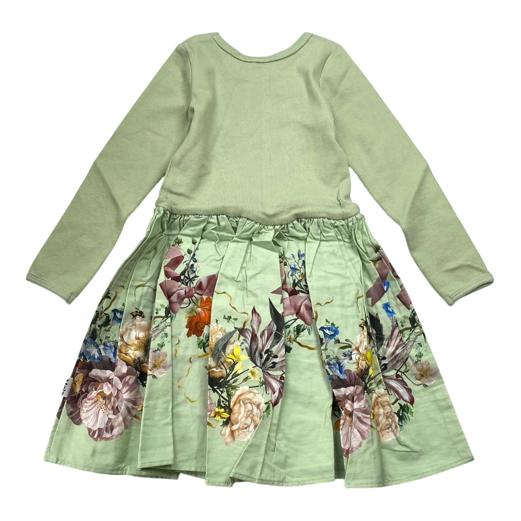 Molo rib dress in flower print. Top is made from rib fabric and the bottom is woven cotton.