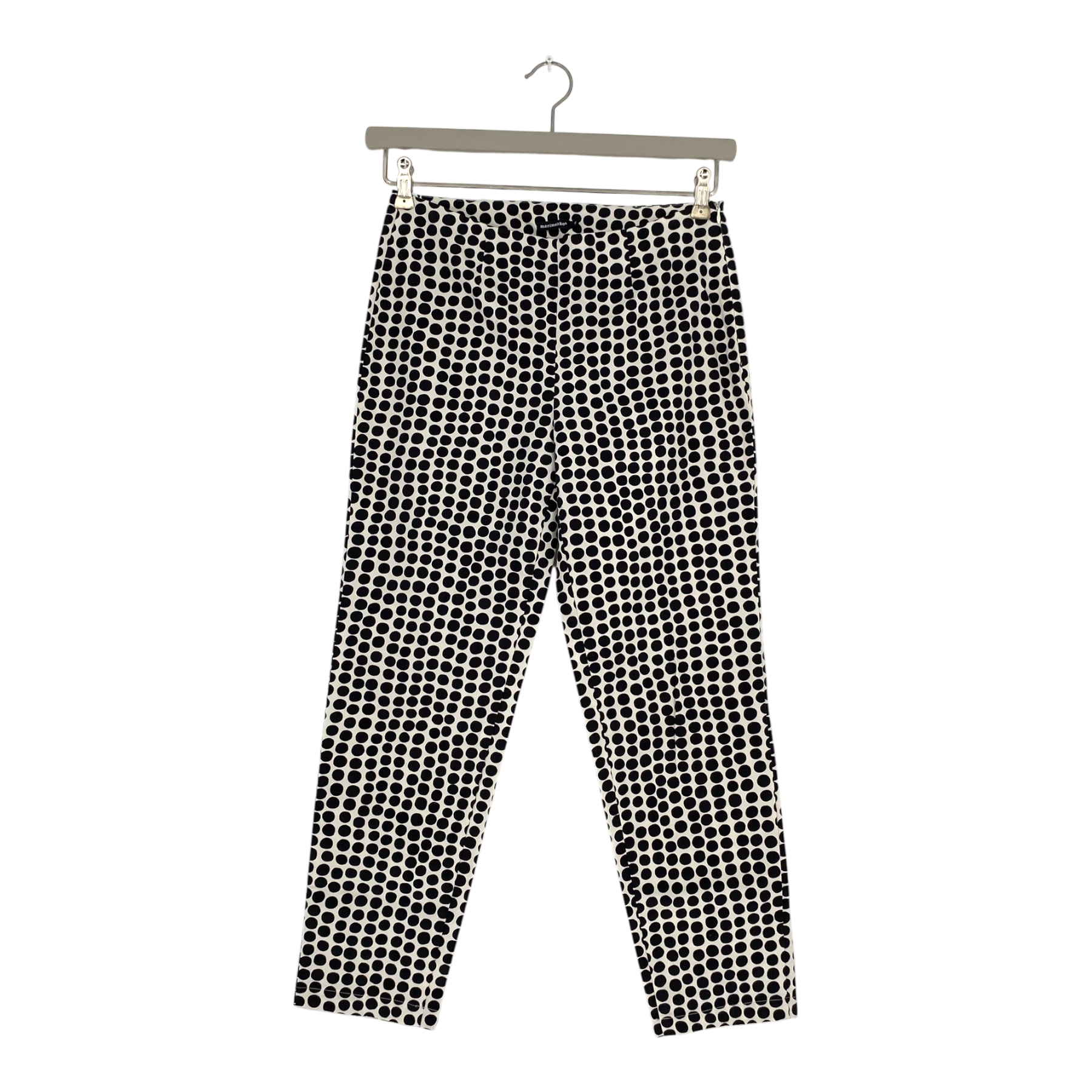 Marimekko "Byysa" pants in black & white dot print. Cropped length. Zipper on the side.