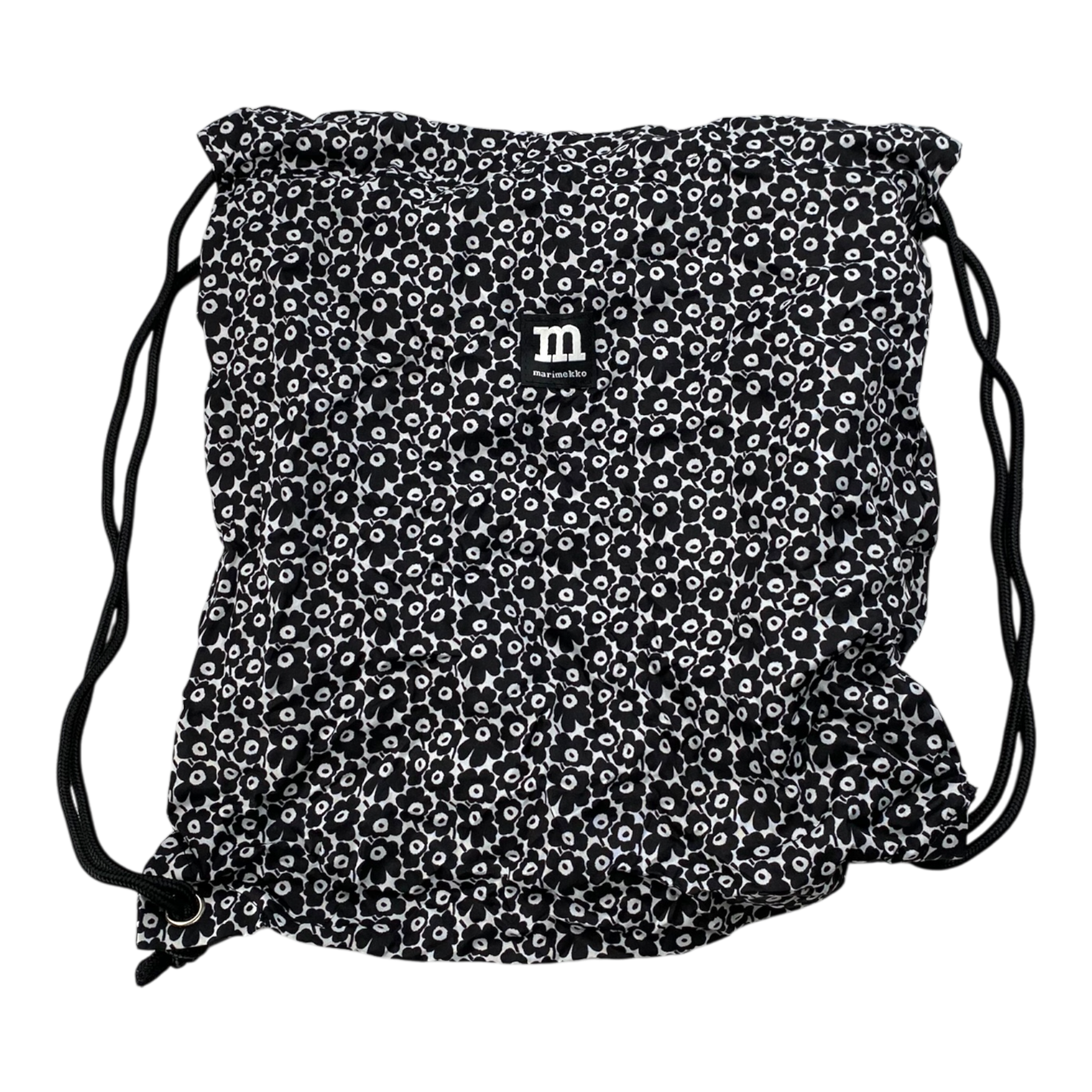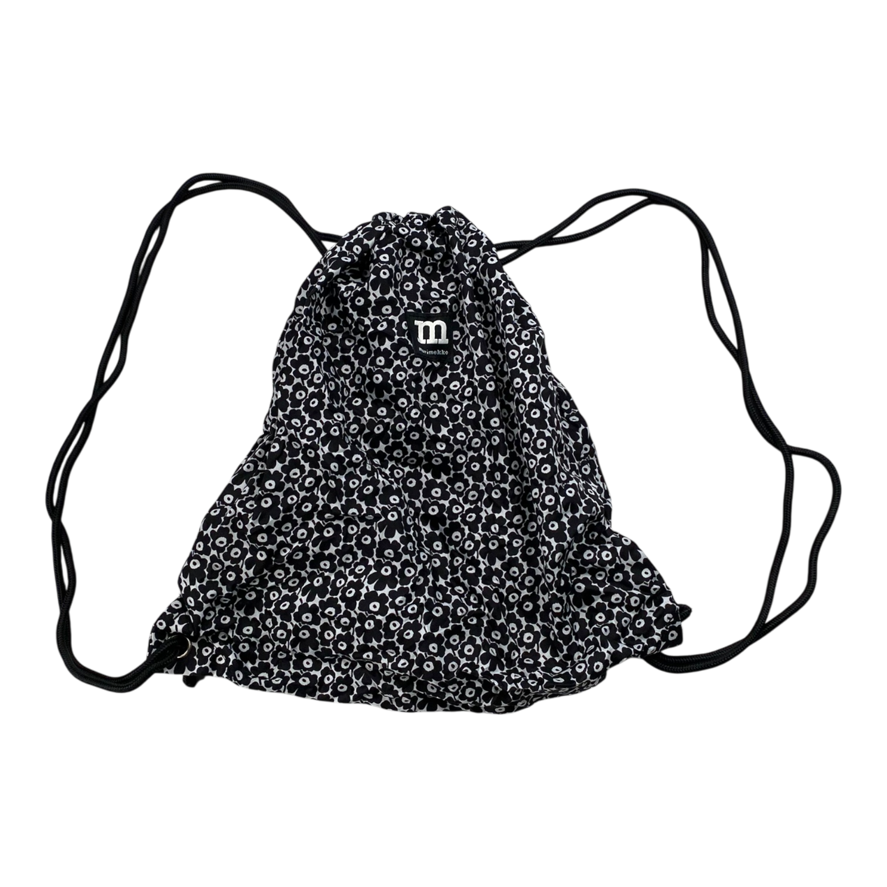 Marimekko smart sack backpack in the Unikko print. The backpack is easy to fold into the small storage bag while not in use.