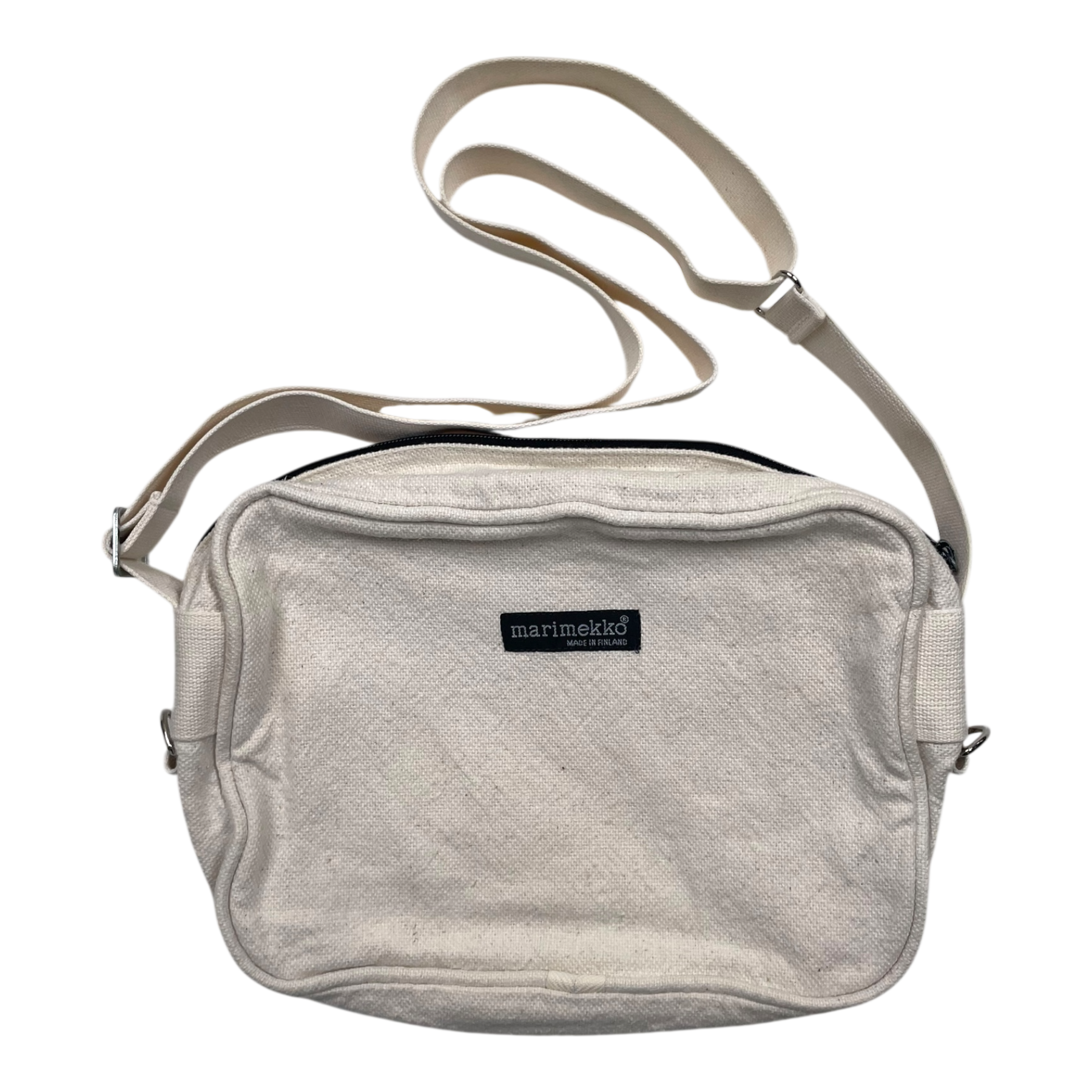 Marimekko vintage shoulder bag with zipper closure and one smaller open pocket inside.