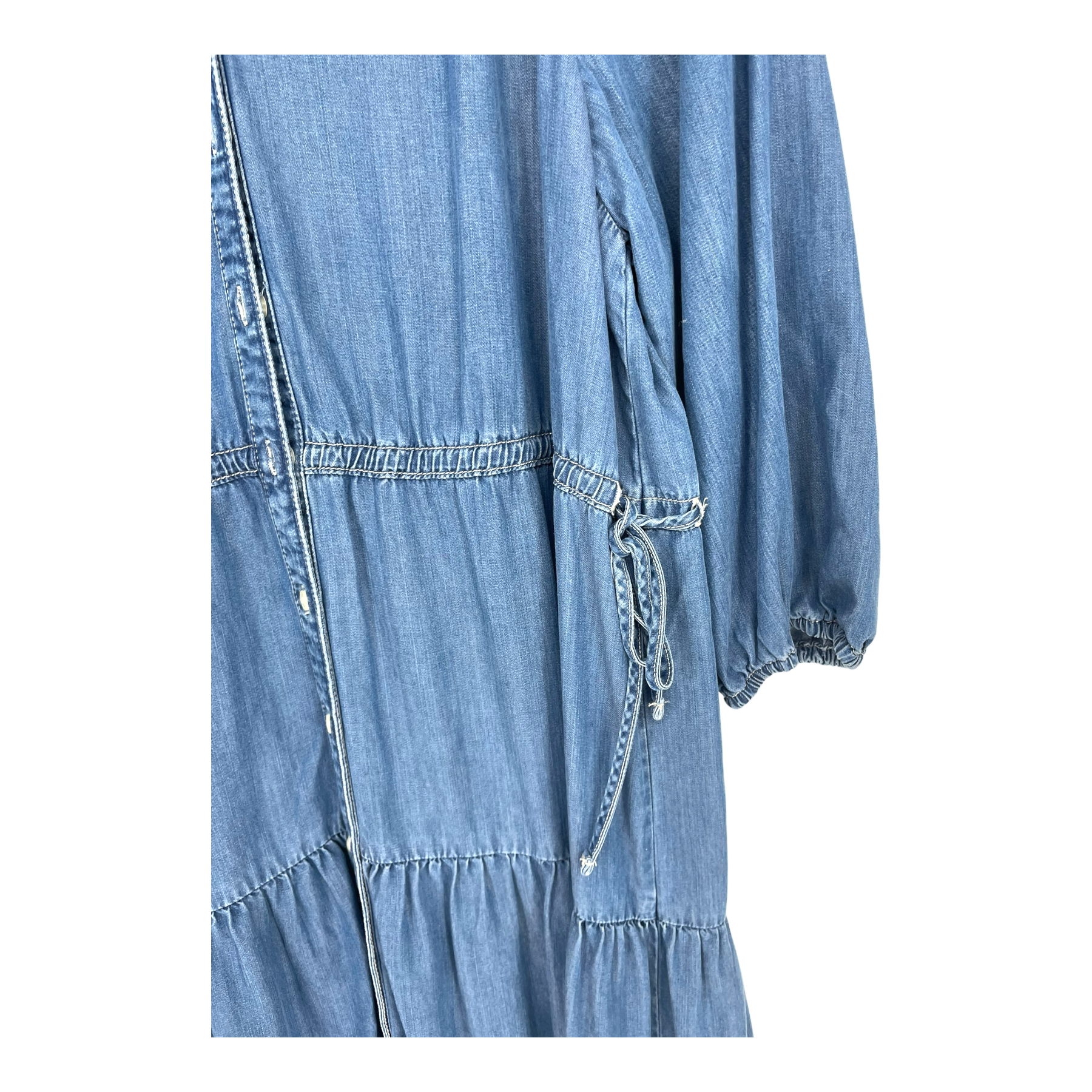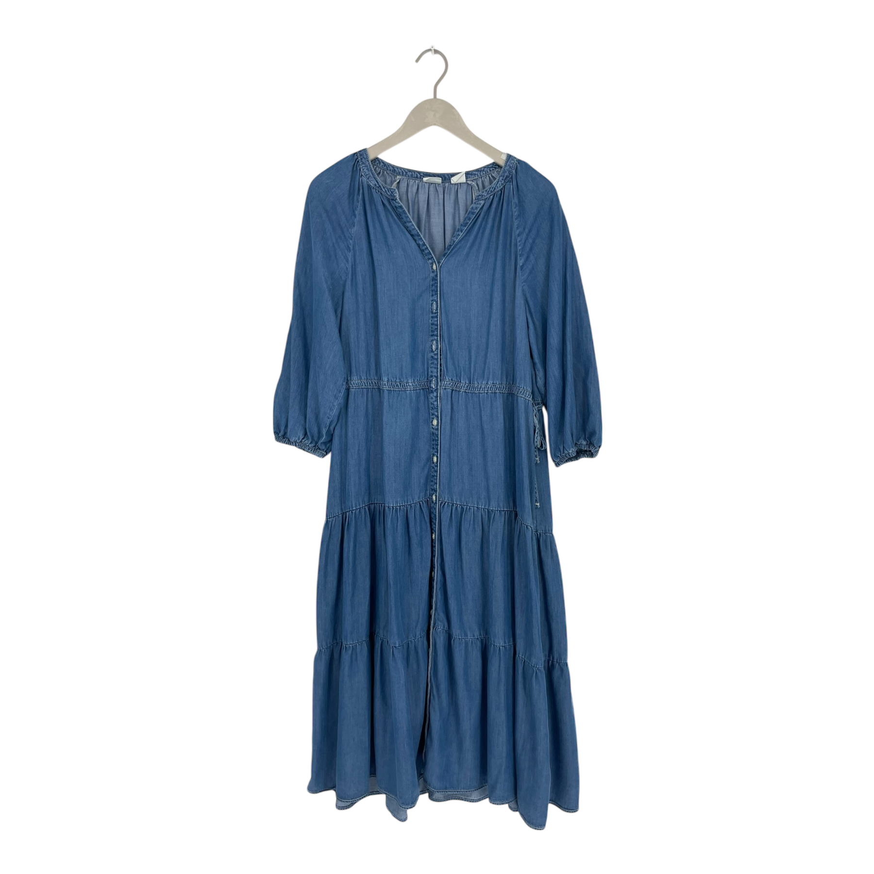 Levi's denim style dress with buttons down the front and strings on the waist.