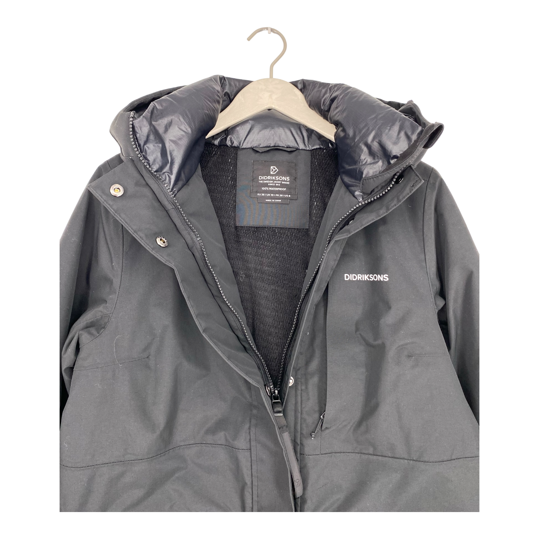 Didriksons Leya parka is a long, padded, A-line parka. It is fully waterproof with taped seams. The parka has a high collar and an adjustable hood. Features a two-way front zip with a protective storm flap and two large front pockets with snap fasteners.