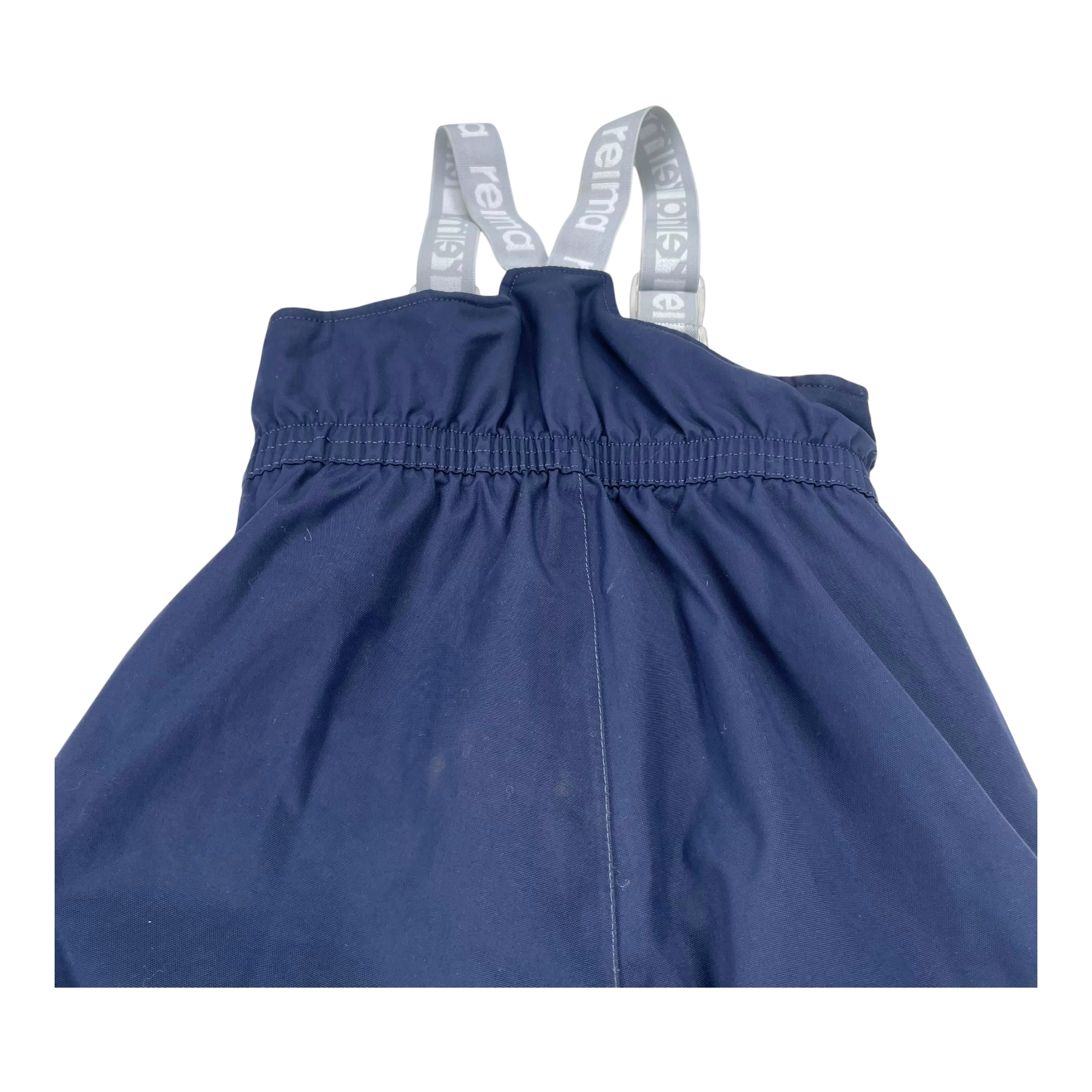 Reima Juoni kid's padded winter outdoor pants with adjustable elastic suspenders, one zip pocket, and snow locks at leg ends. The material is originally waterproof up to 10,000mm. All seams are sealed and the material is durable yet breathable.