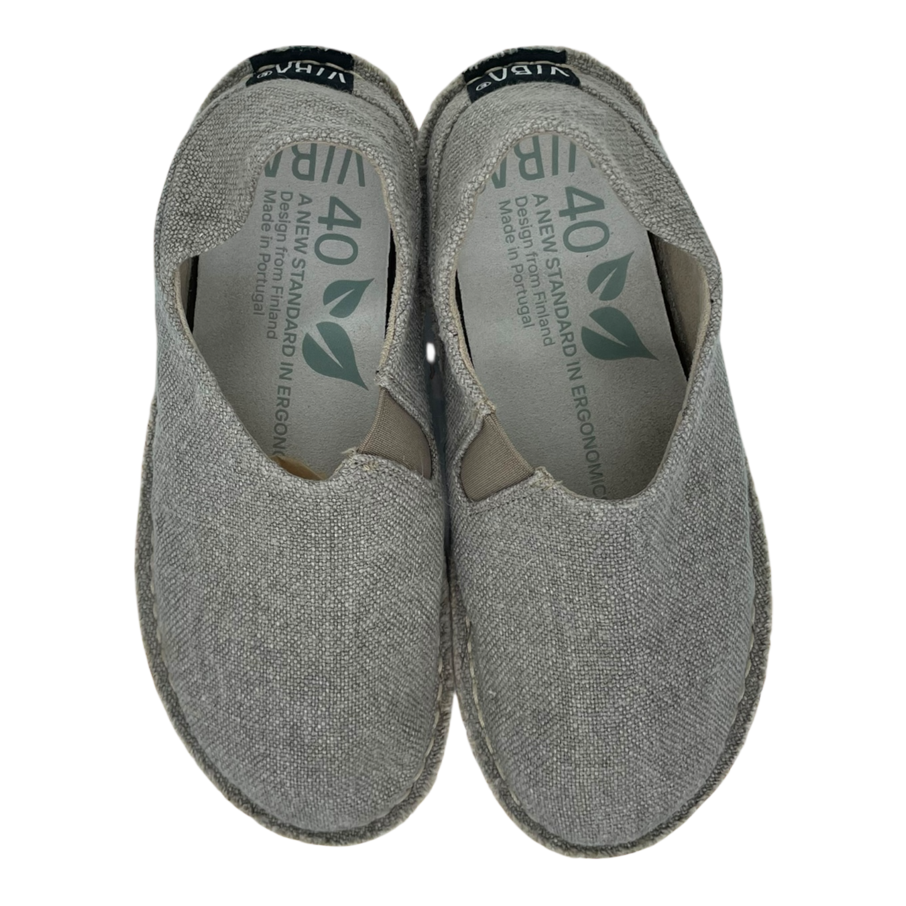 VIBAe Zuma linen shoes. VIBAe all-around unisex slip-on shoe is made from soft linen fabric that is designed with love in Finland and California, proudly handmade in a family-run factory in Portugal. These shoes are the ultimate multitaskers in your footwear arsenal – sophisticated, classic, and ready for any occasion.