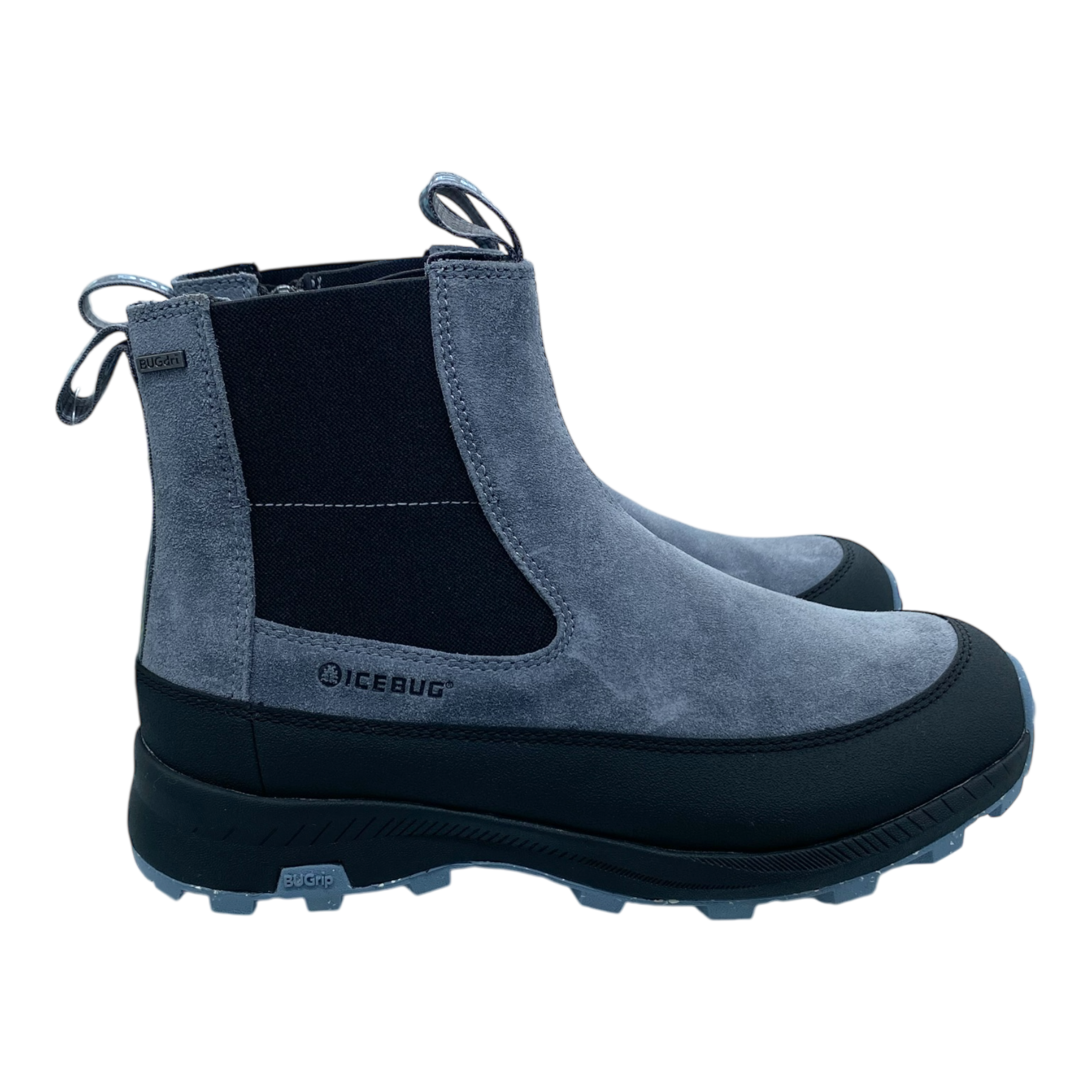 Icebug Boda W BUGrip  – warm and comfortable winter boots for active everyday use. Waterproof BUGdri™ membrane keeps feet dry, while soft fleece and Primaloft® Bio lining provide warmth. Easy on/off with side zipper and elastic panels. Lightweight EVA midsole with 20% BLOOM® algae foam ensures cushioning, and BUGrip® rubber outsole with carbide studs offers excellent traction on snow and ice. Wide fit for all-day comfort.