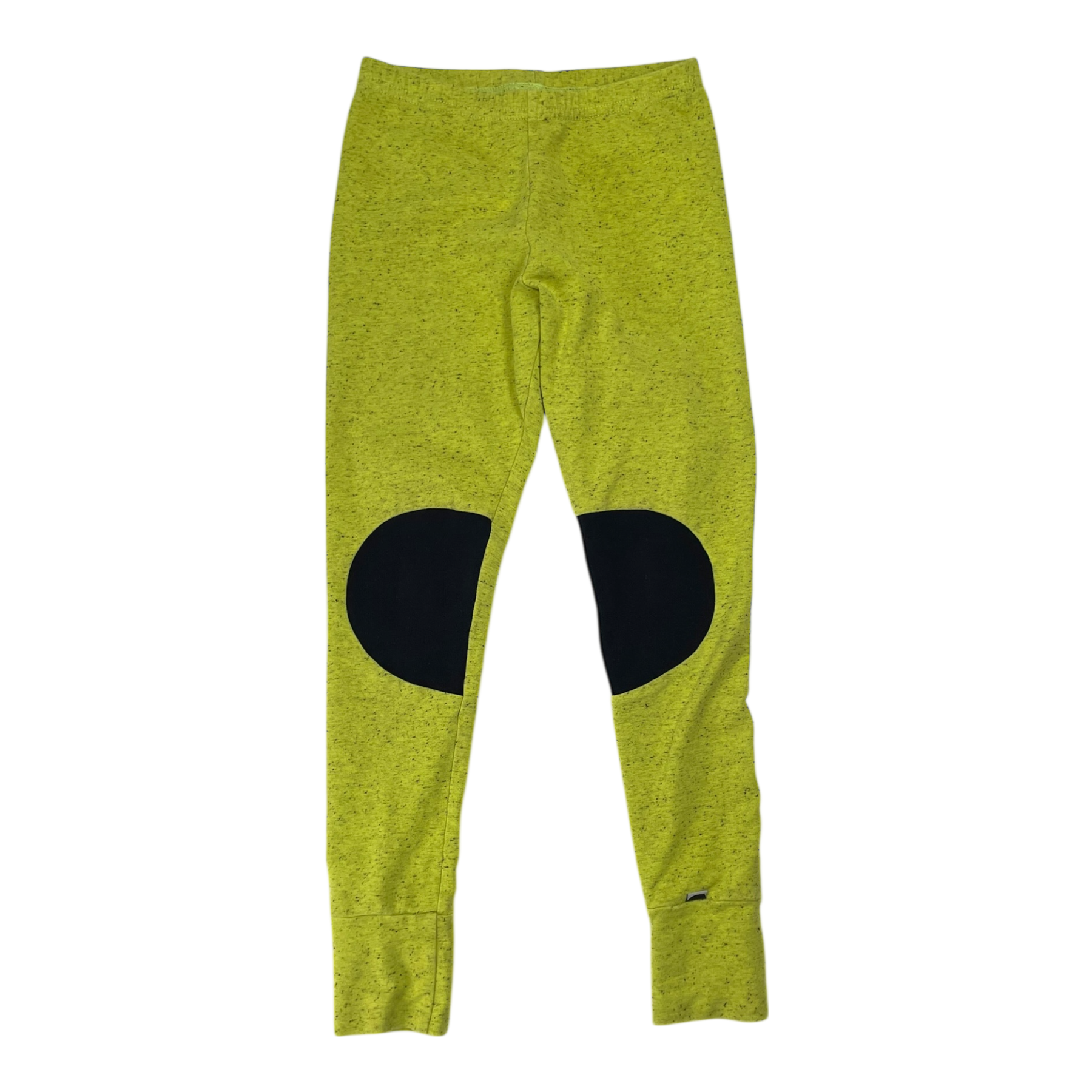 Papu leggings with contrast knee patches. Made from elastic organic cotton that feels comfortable to wear. Foldable leg ends for a longer fit for one child.