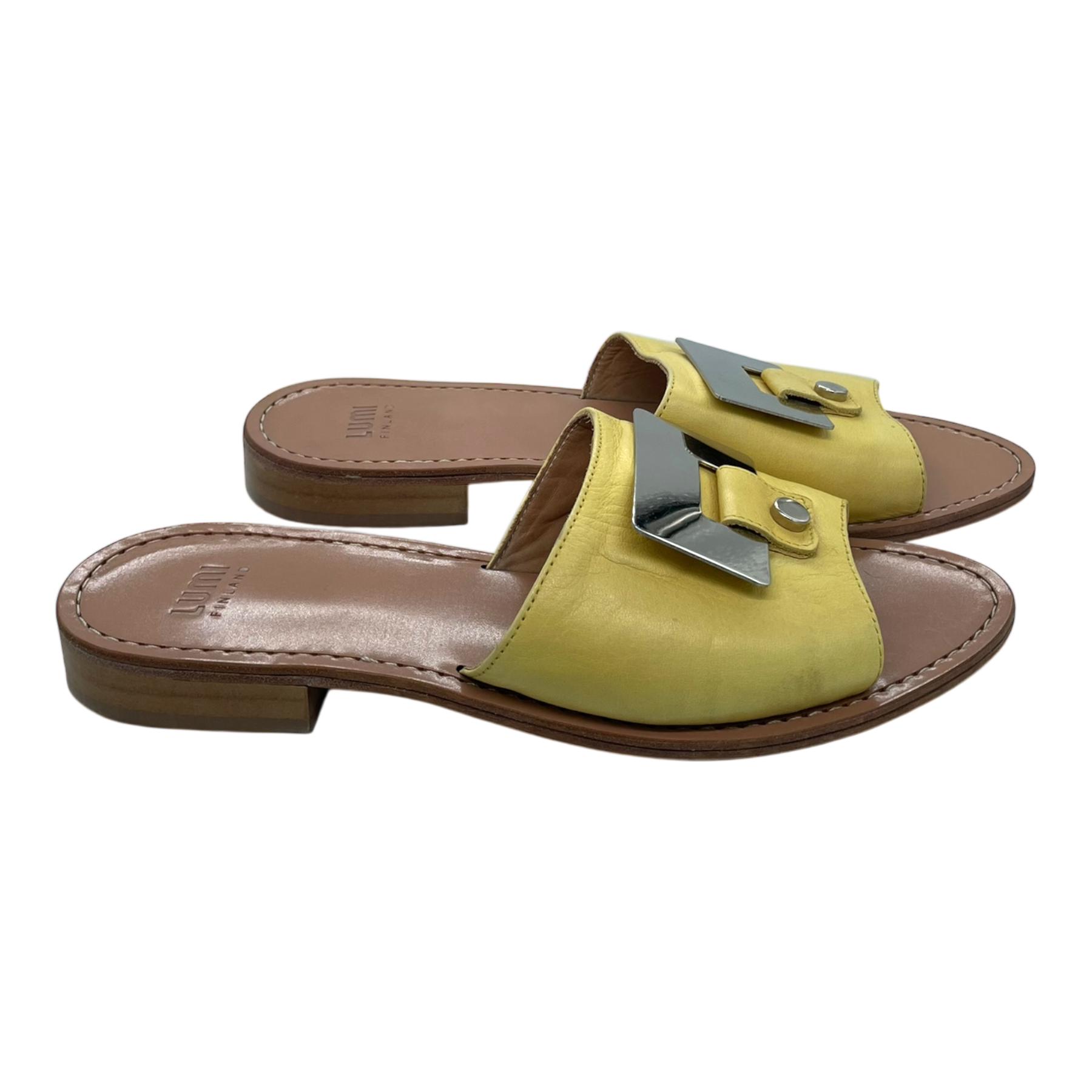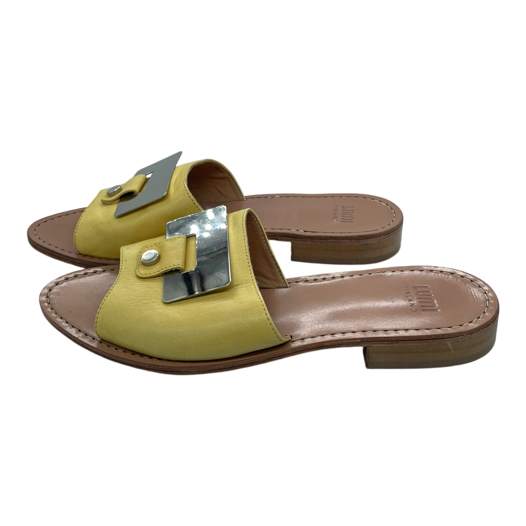 LUMI leather sandals with metallic detail.