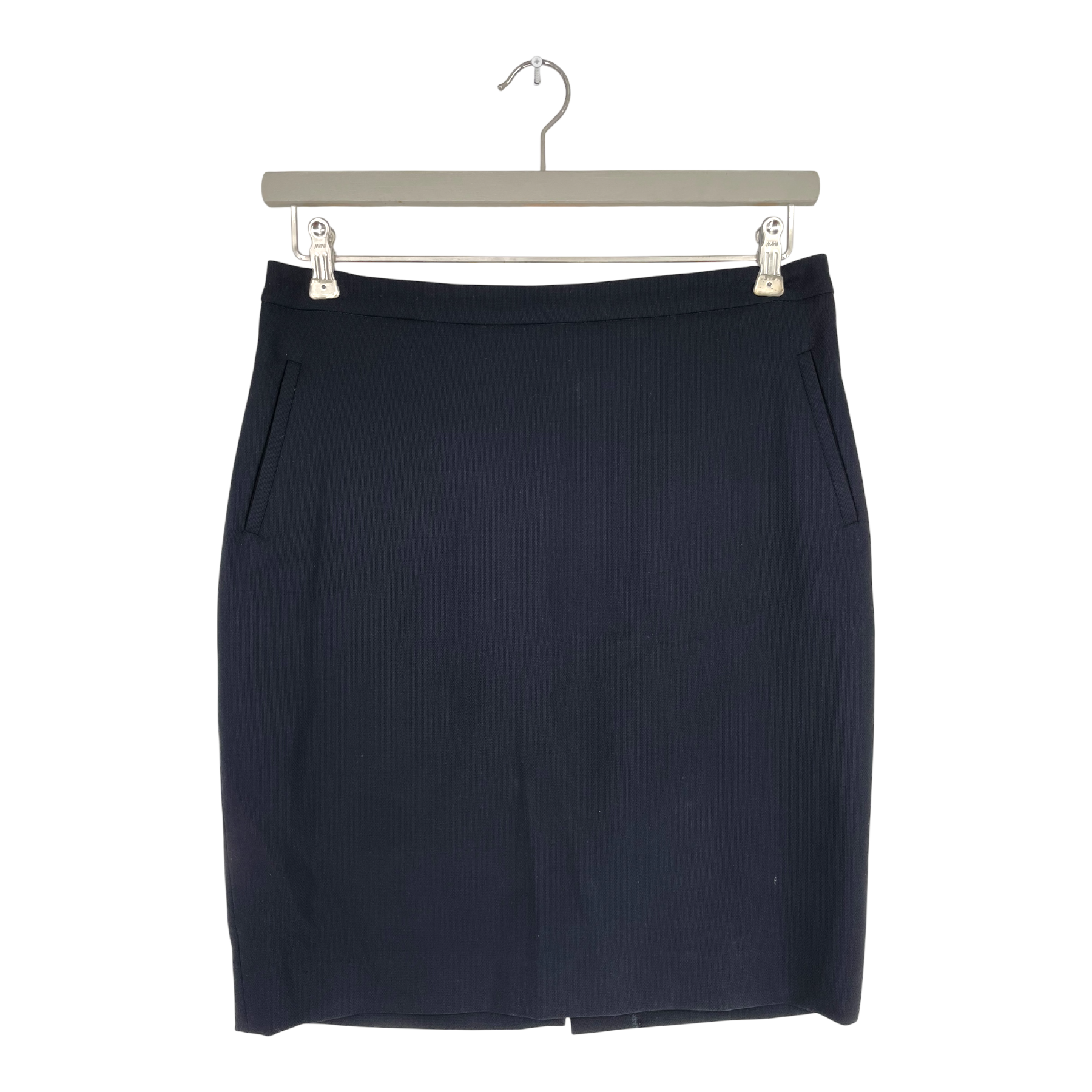 Tiger of Sweden lined woven skirt with one side pocket and one fake pocket on the back. Skirt has zipper and short slit on the back side.