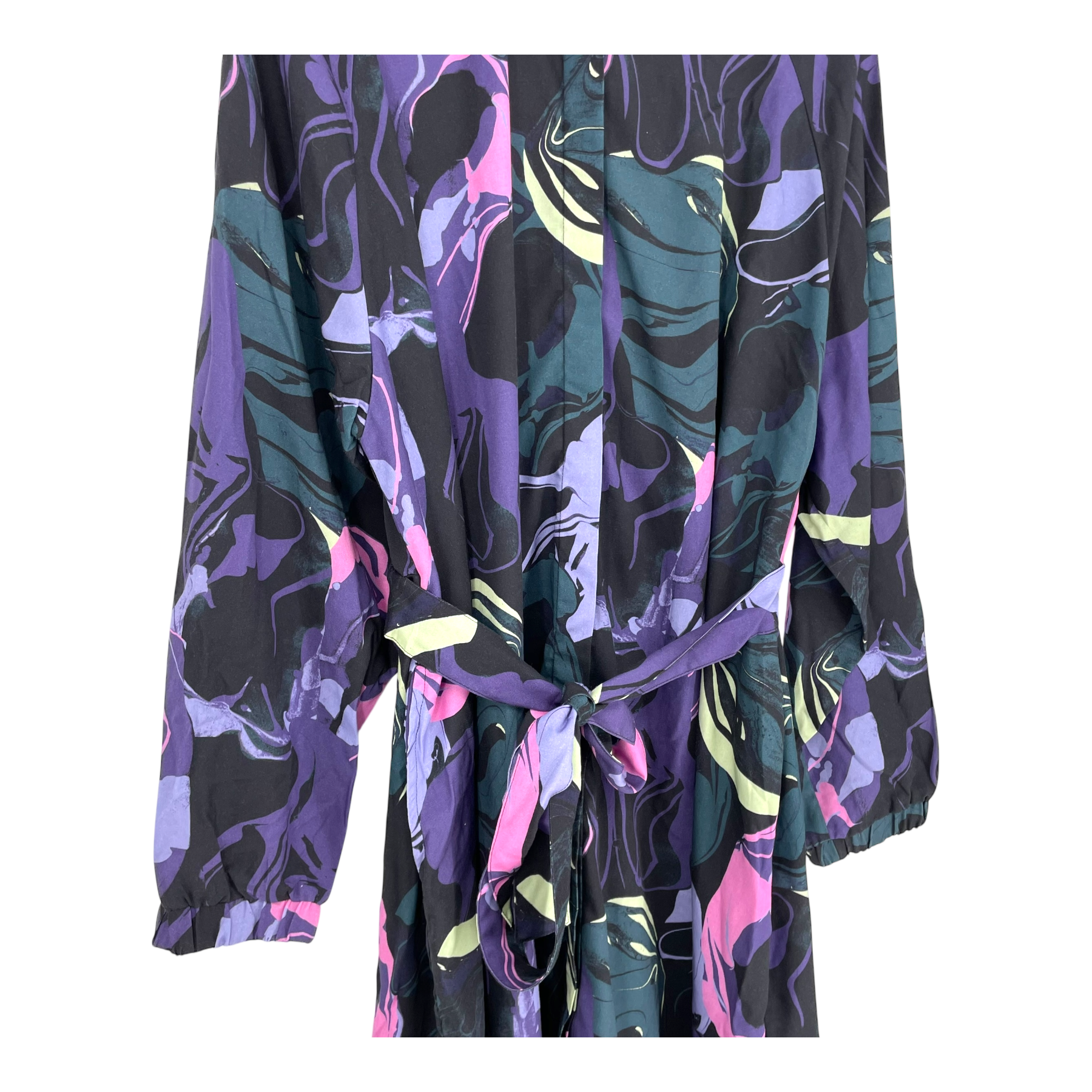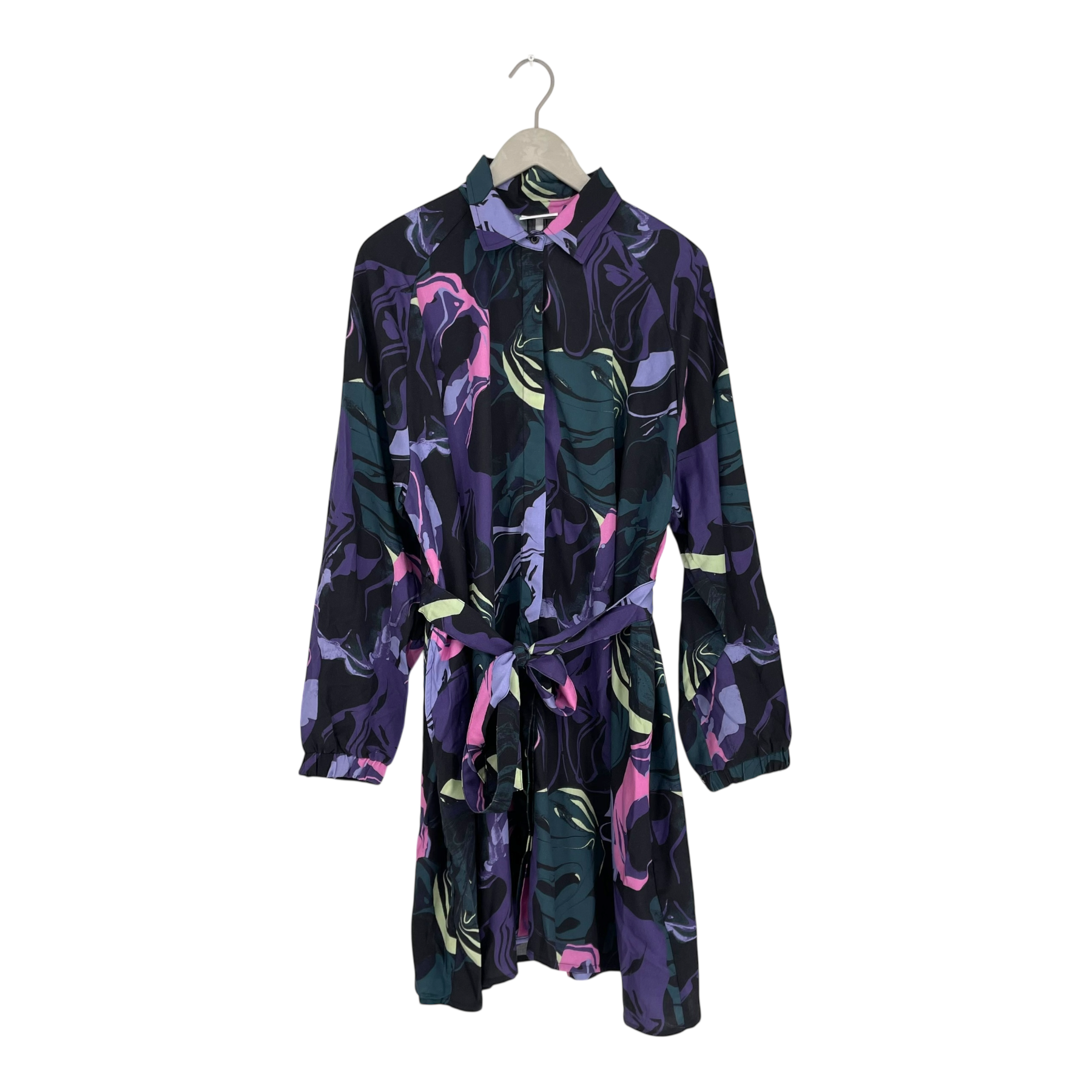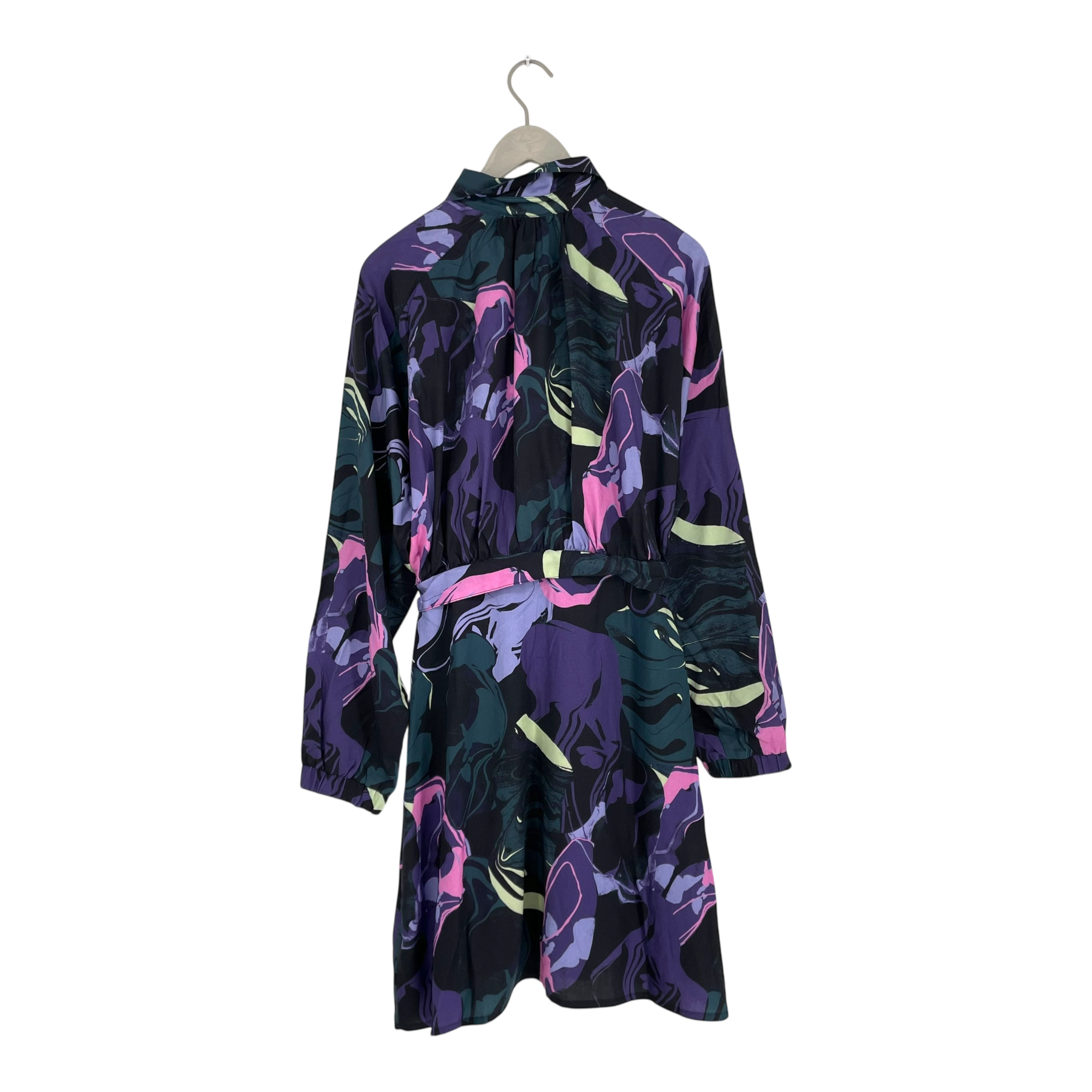 Makia Liris dress is woven flowy dress with puff style long sleeves, an adjustable belt and buttons in the front.