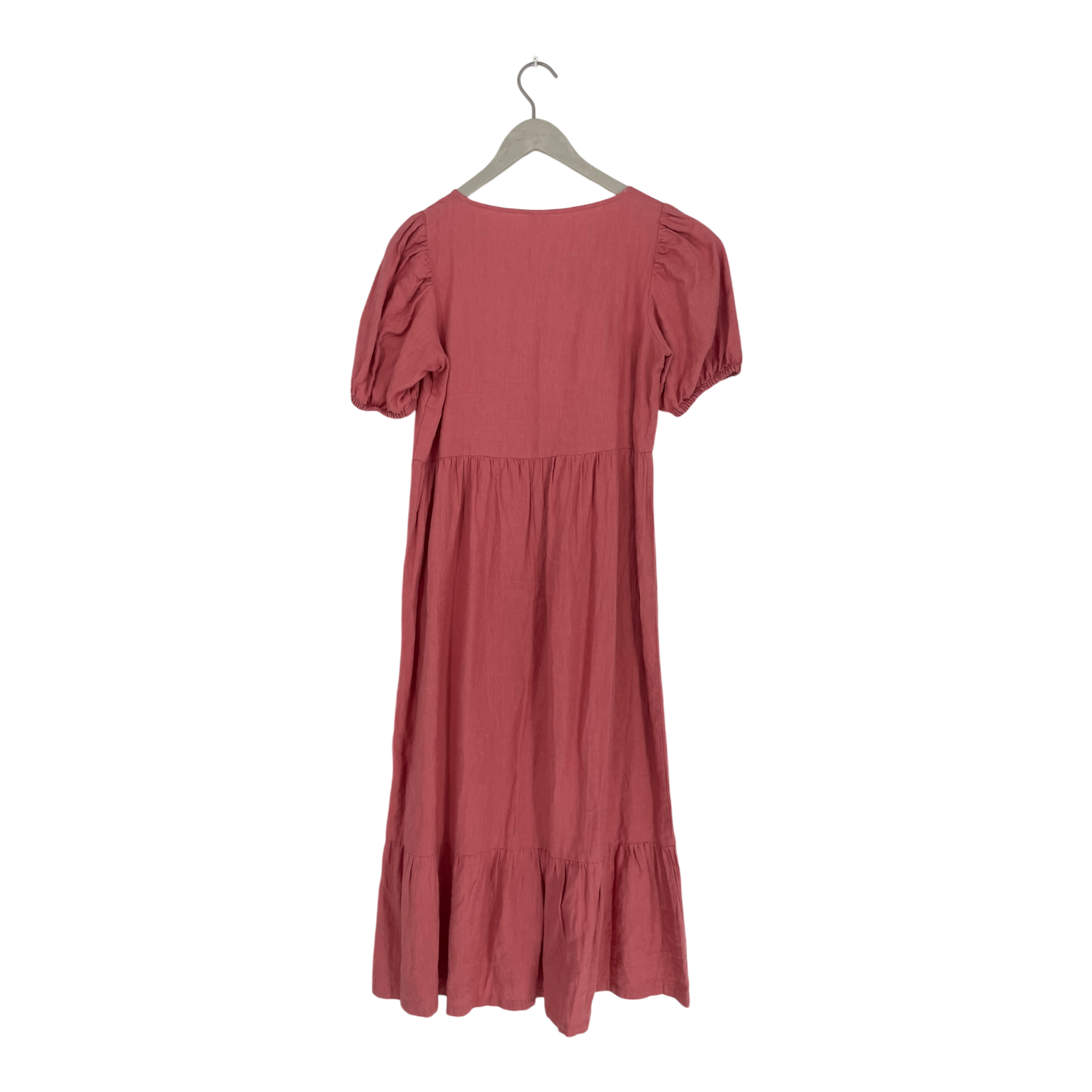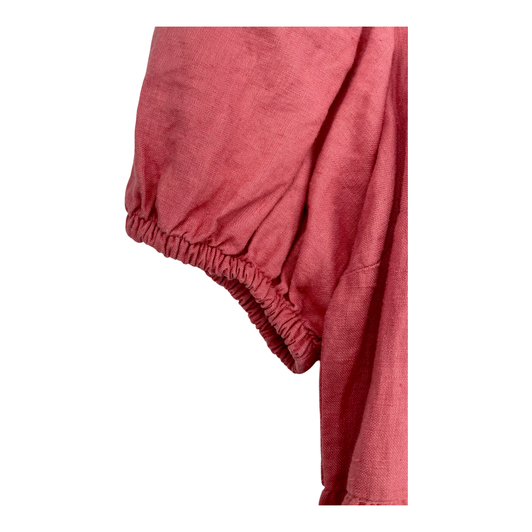 Nakoa puff sleeve linen dress with gather detailing on the waist and on the hem.