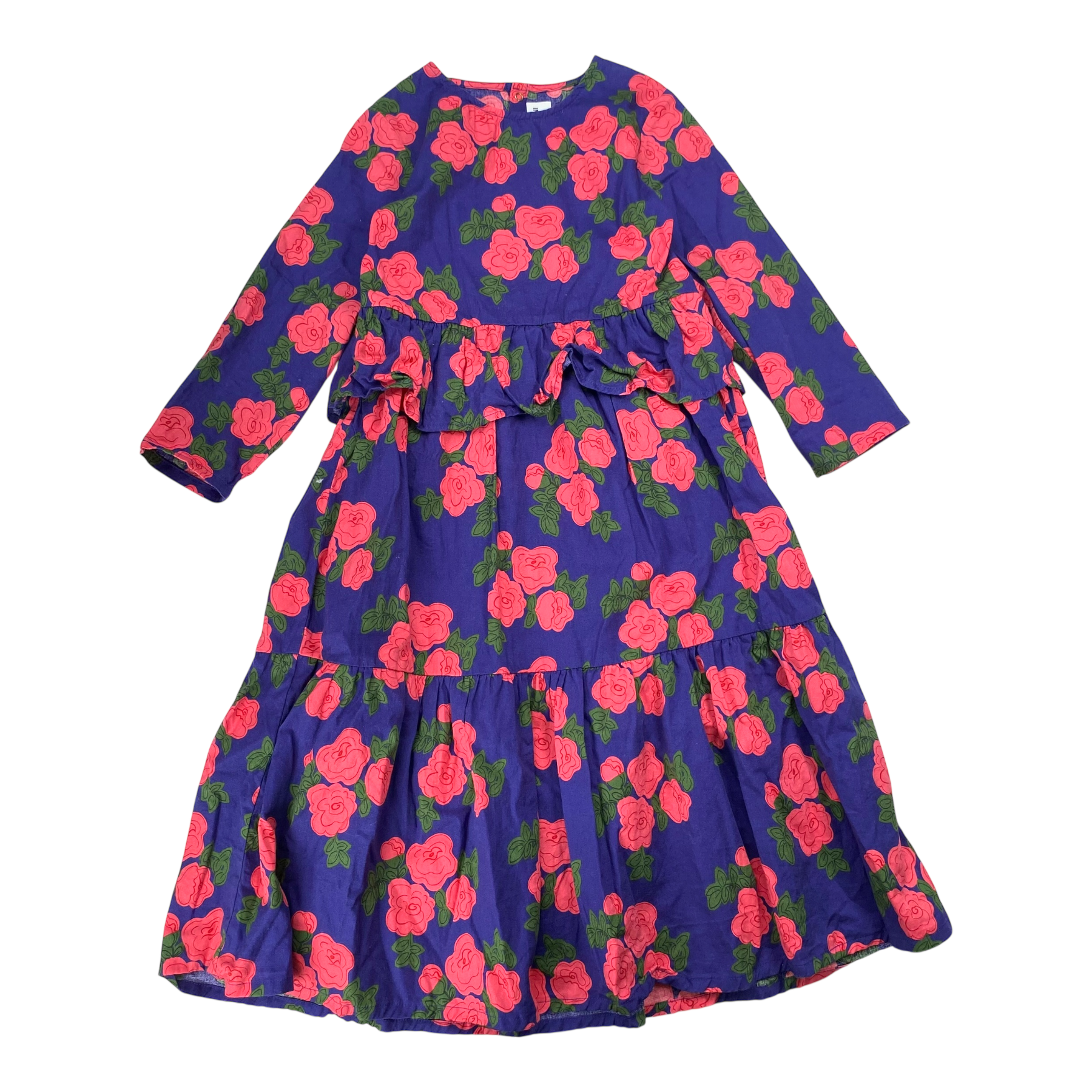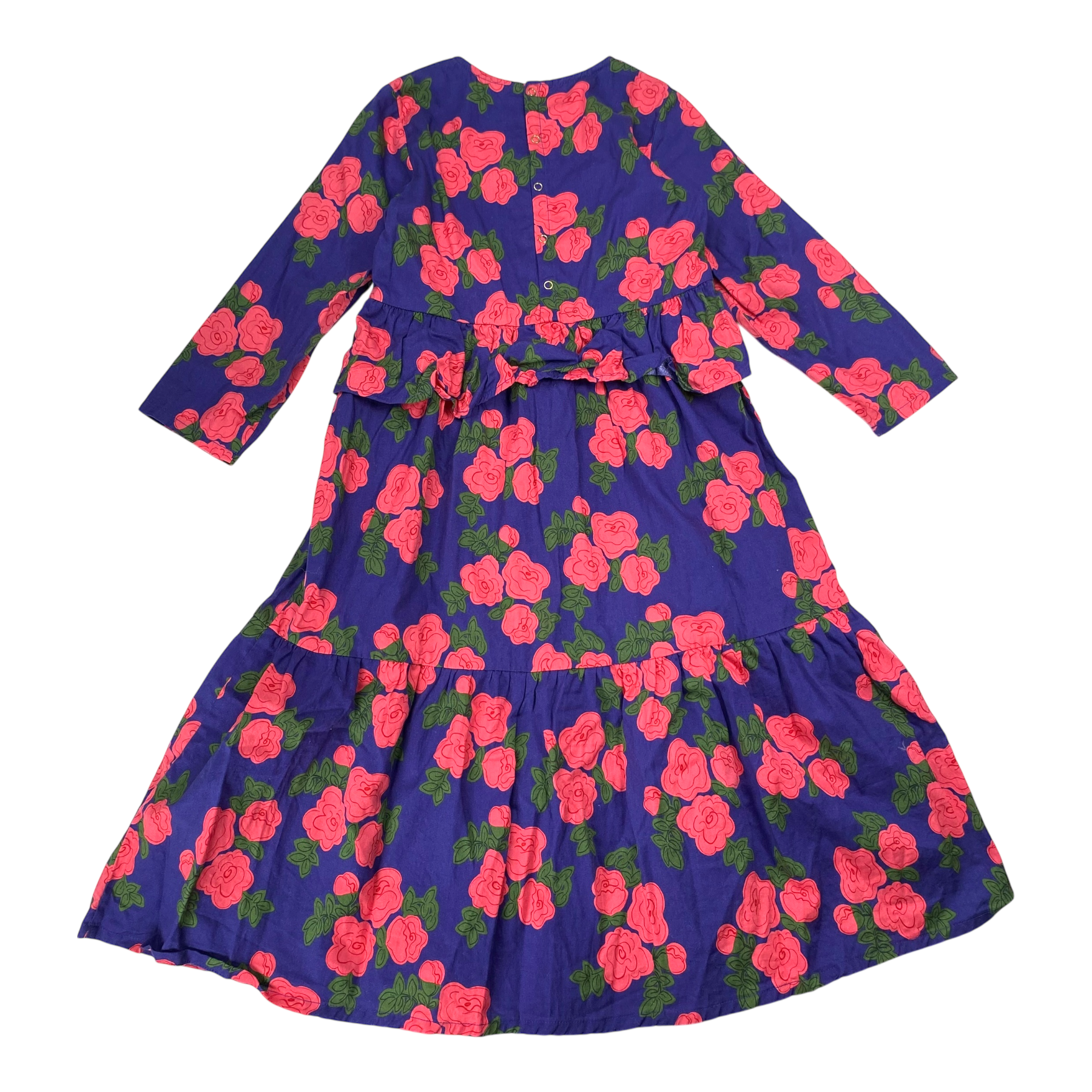 Mini Rodini long sleeve woven dress with buttons in the back in flower print.