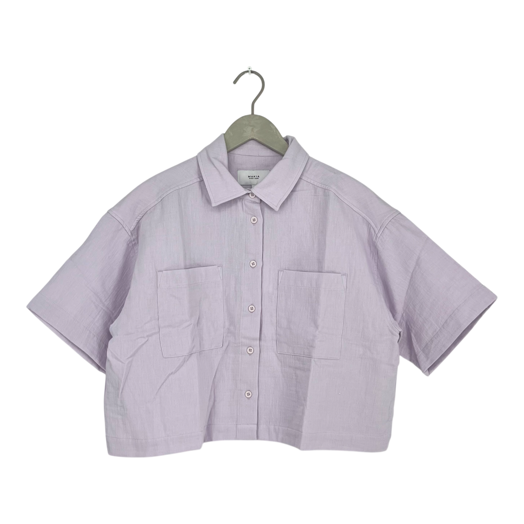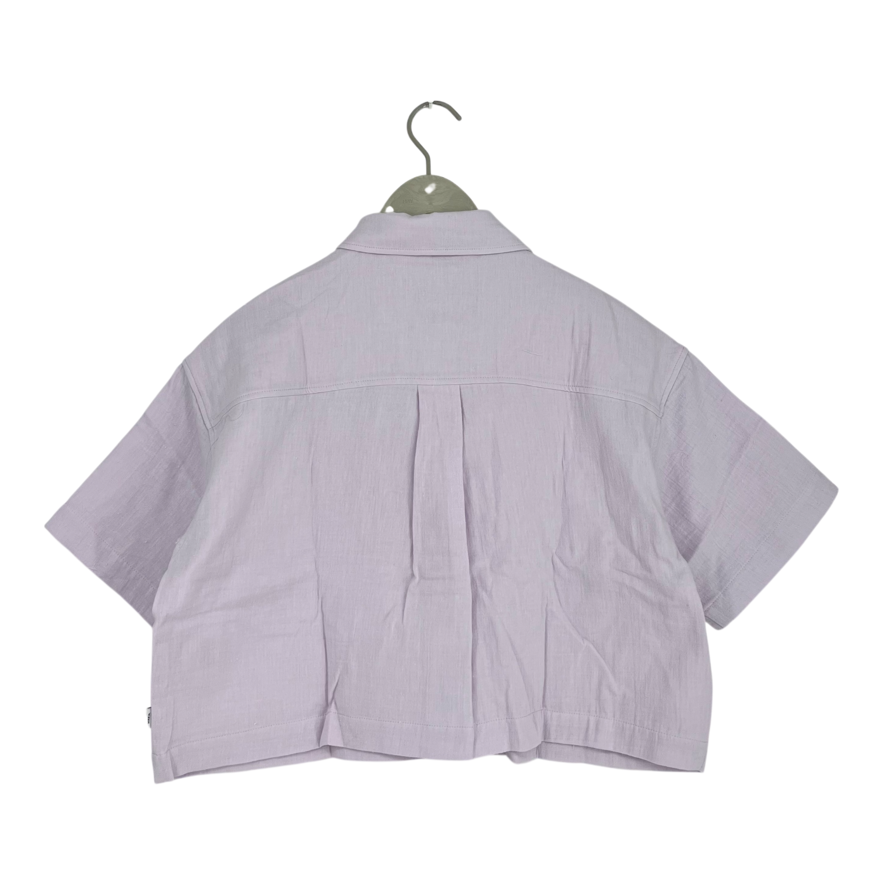 Makia lily woven t-shirt with pockets and button closure in the front.