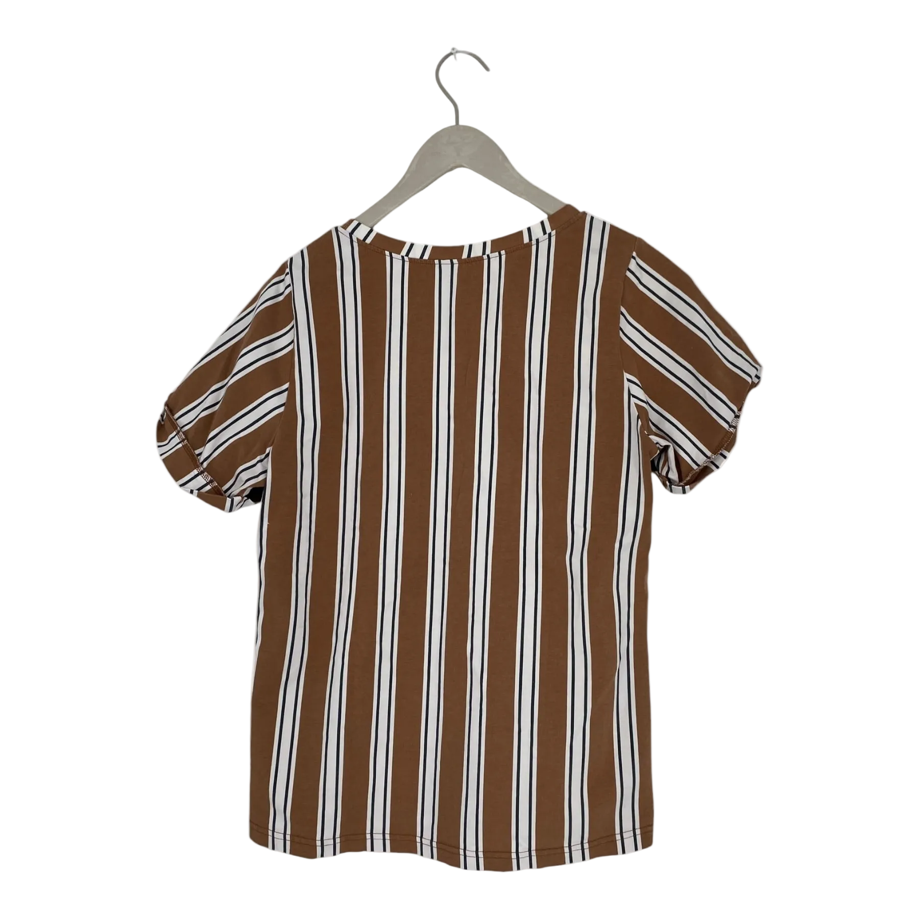 Kaiko tricot t-shirt in stripe print. Fabric is turned in the cuffs.