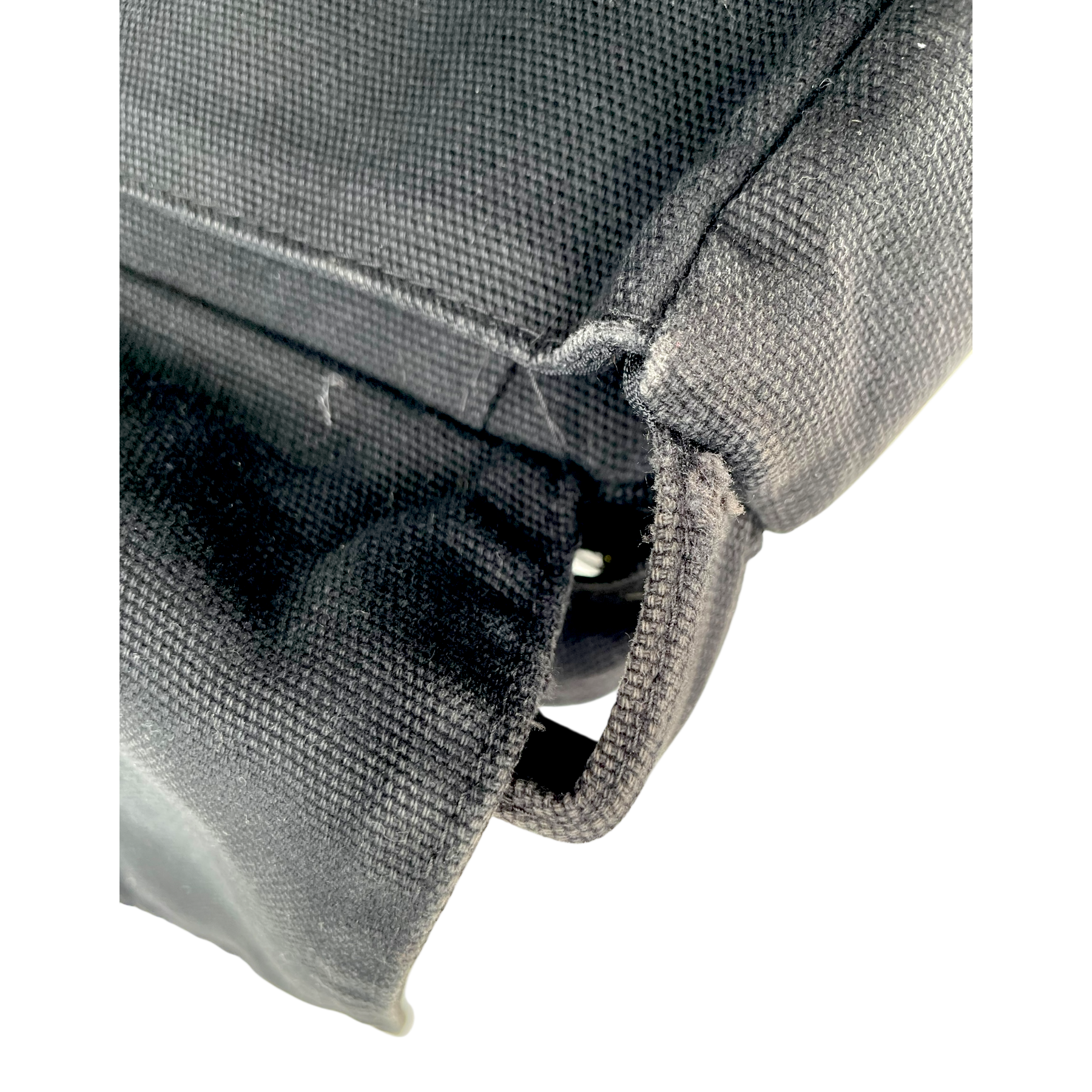 The bag shows signs of wear in multiple places as well as a few stains, as shown in the pictures.