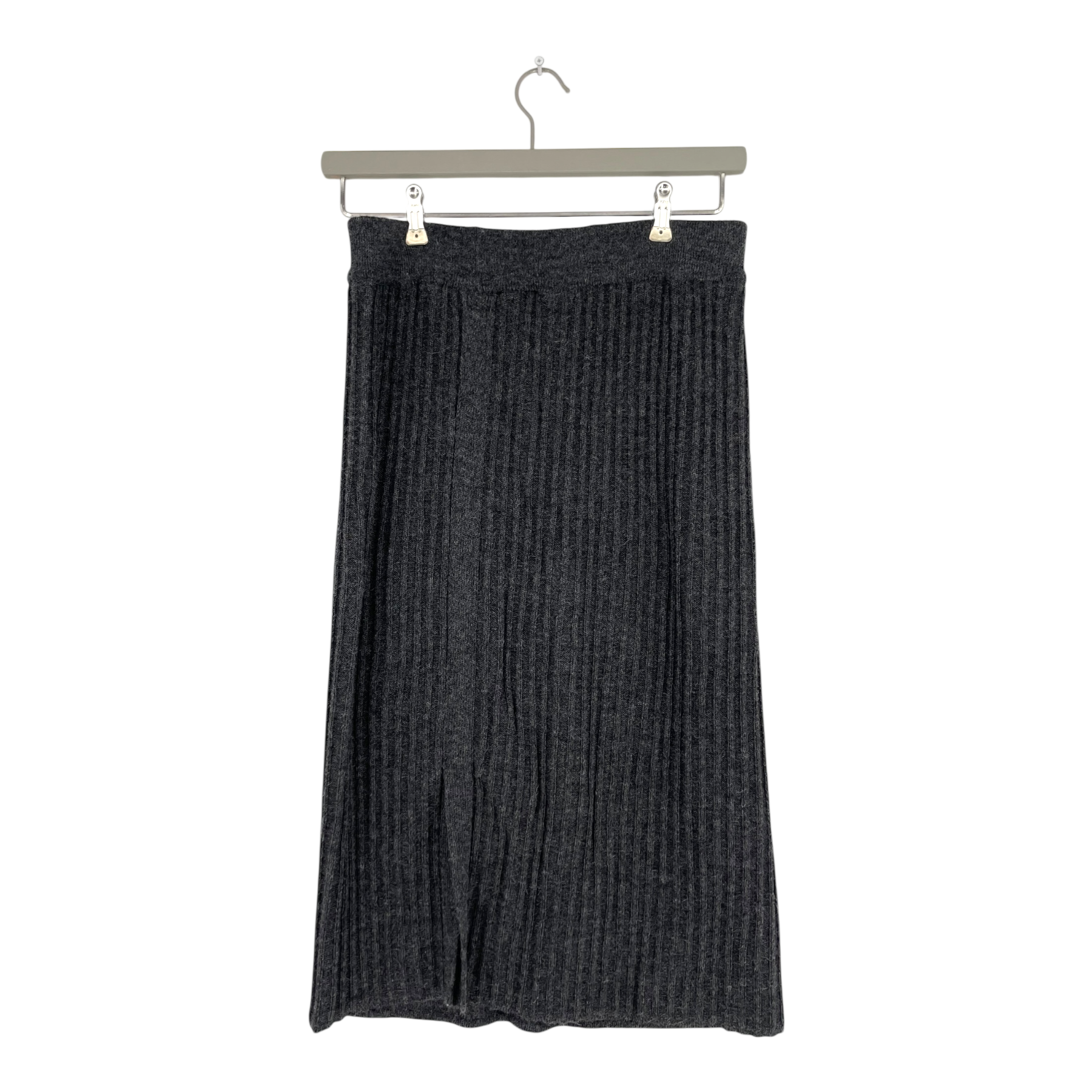 Alpa Reed knee length ribbed alpaca wool skirt with a slit.