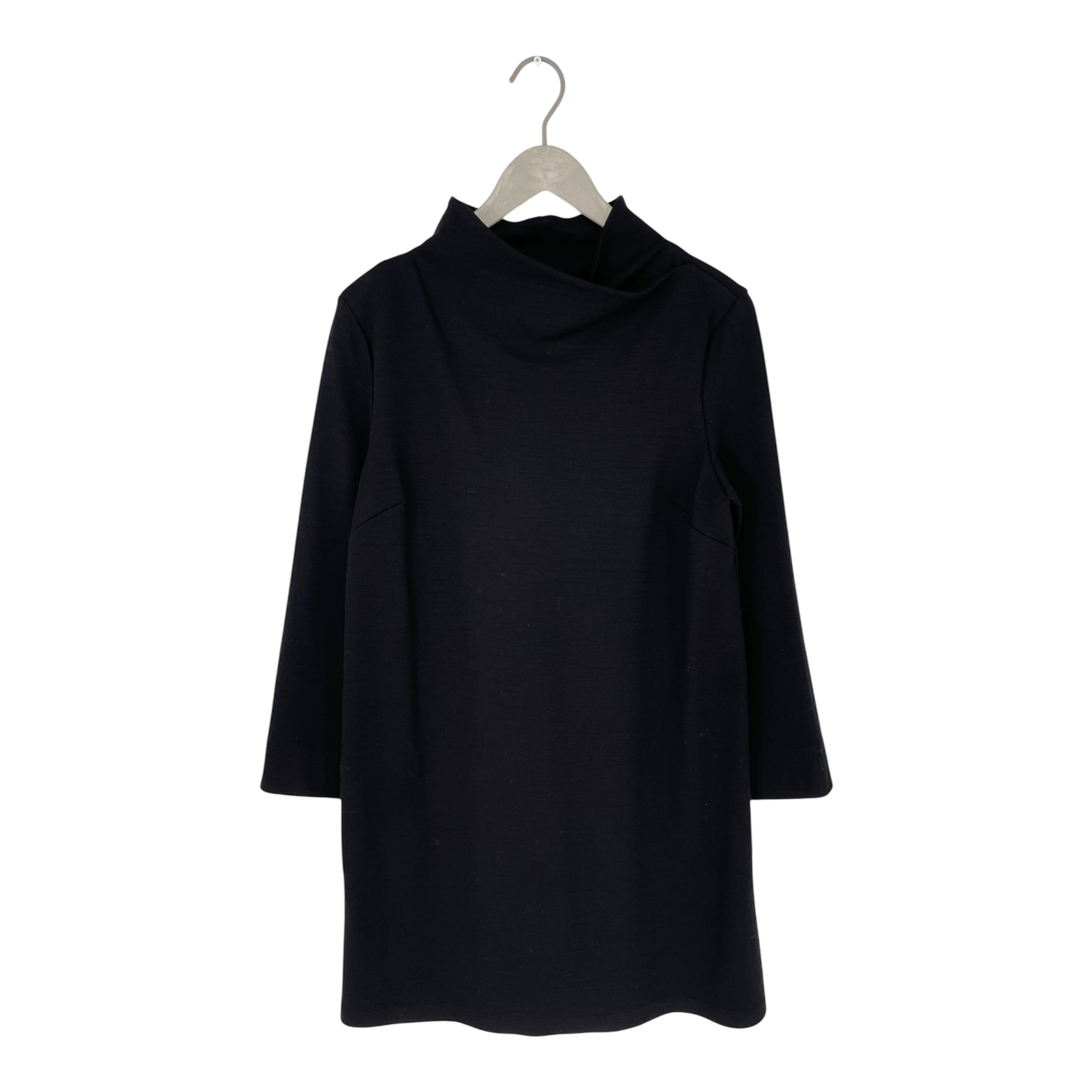 Falla Finland® Talvikki tricot dress. Wrapped mock neck, side pockets and slits on the sleeve ends.