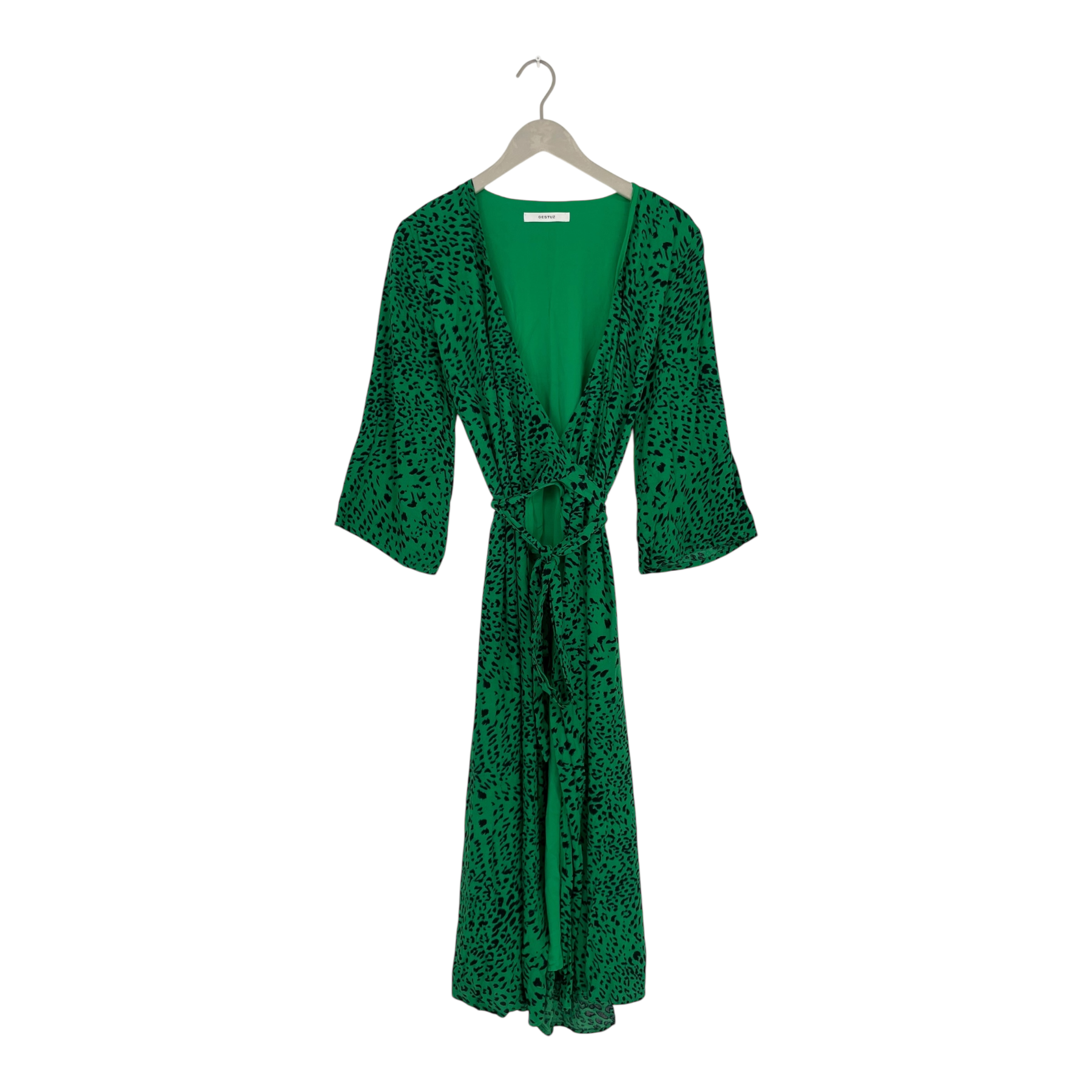 Gestuz Loui wrap dress with half sleeves and attached fabric belt. The item has one hole in the lining, as shown in the picture, but is otherwise in good condition.