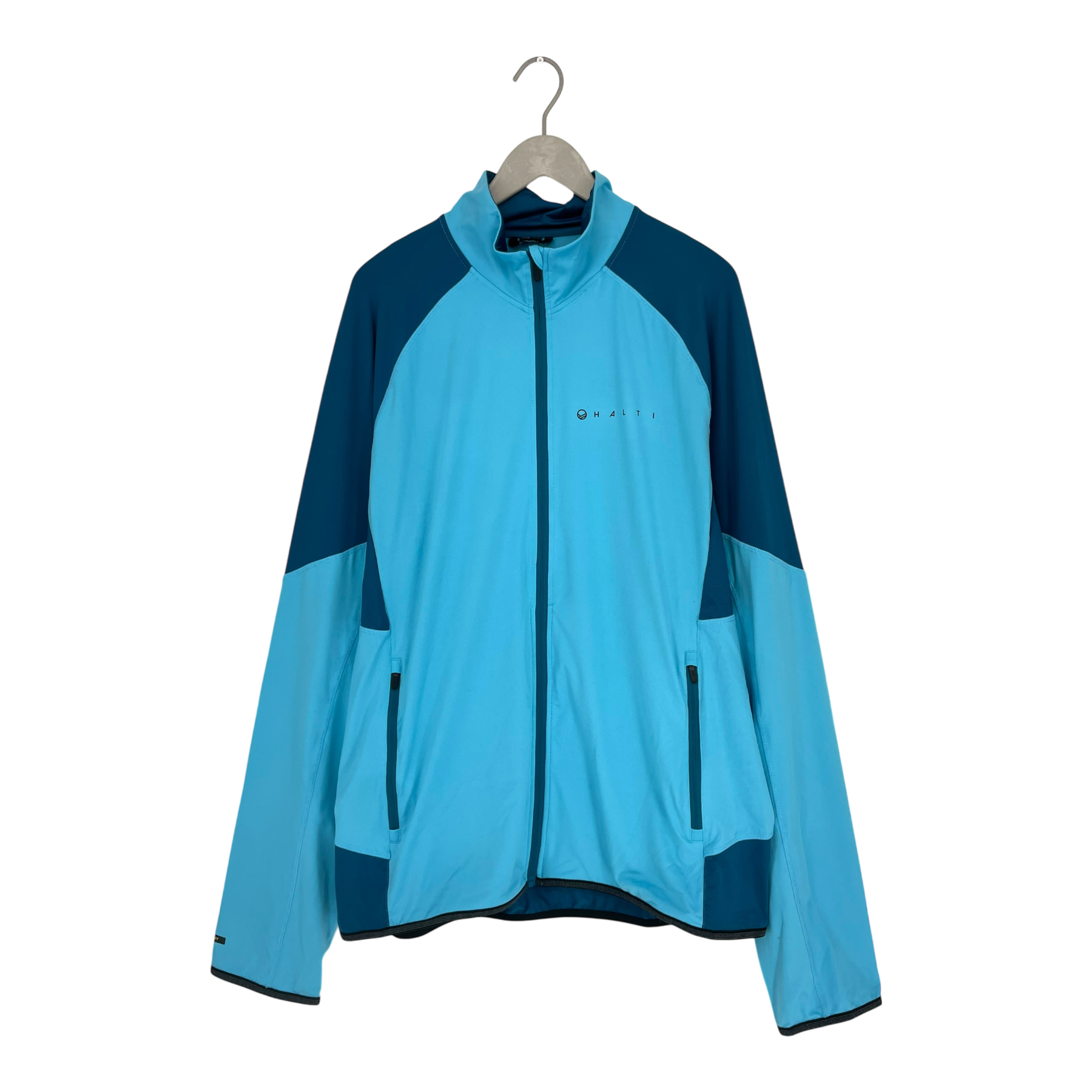 Halti zip sport shirt with side pockets, elastic hem and cuffs.