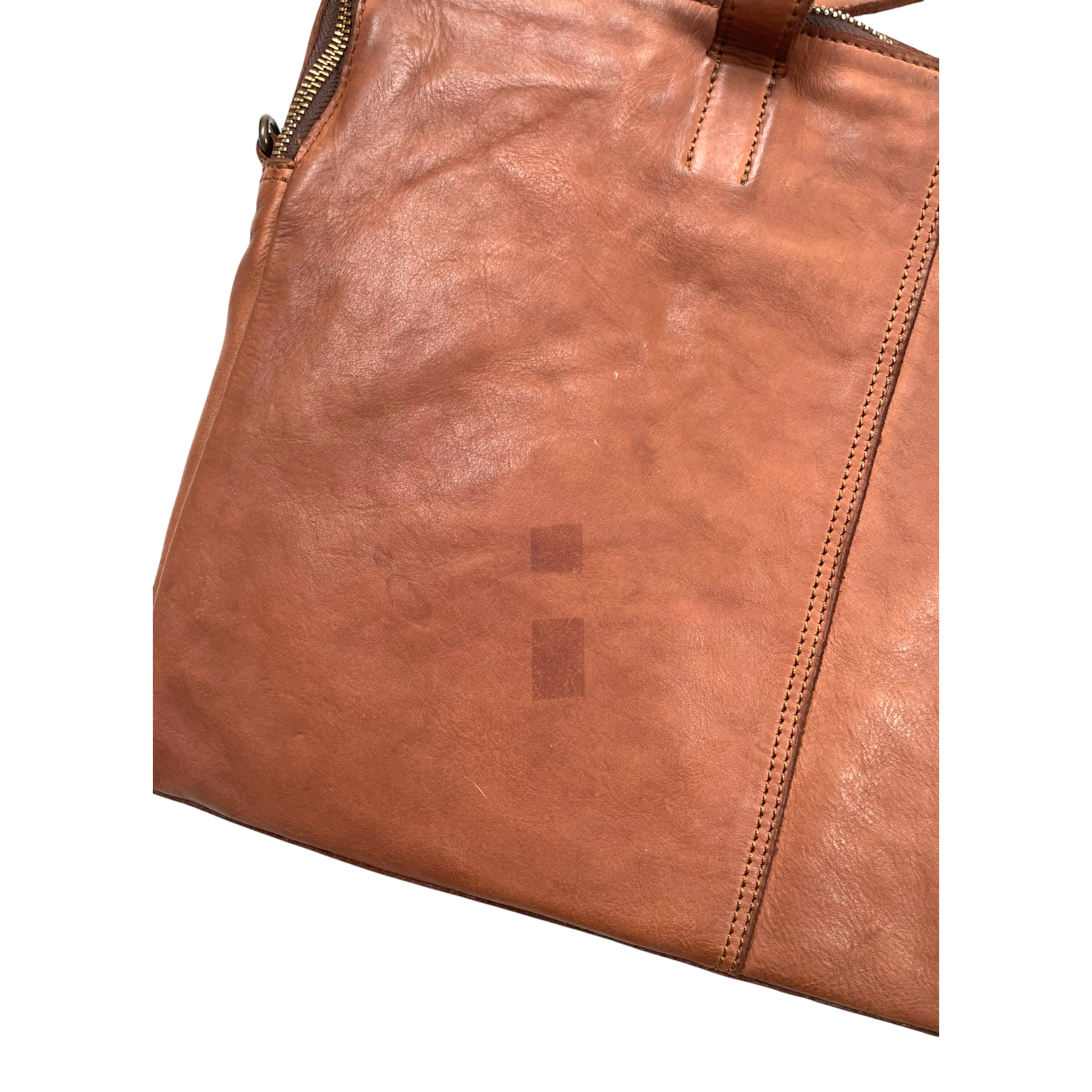 This item has some marks on the leather in the front and back as shown.