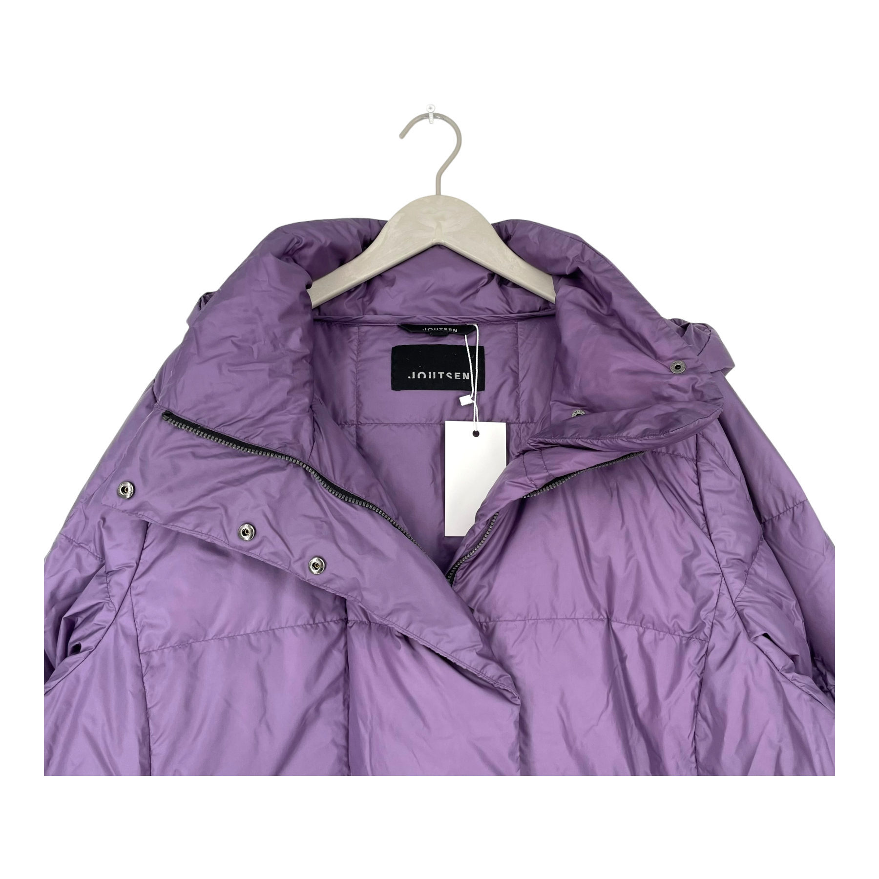 Joutsen Alma jacket is a down jacket with a grid stitching and a slightly oversized fit. This jacket is perfect throughout fall and spring and for warmer winter weathers. There is two sealed side pockets and a double-slider fastening zipper in the front that adds comfortability and daily functionality. The stand-up collar protects the neck, the hood can be detached and the sleeves can be rolled up for a better fit.