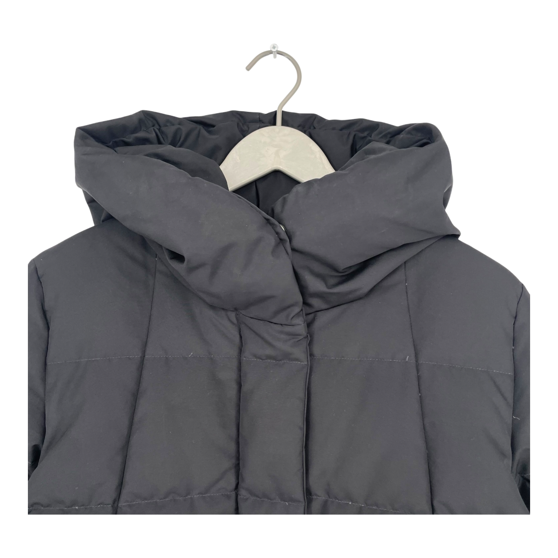 Joutsen Lume is ahigh-quality, warm and plush winter jacket from Joutsen. The jacket has grid stitching and two side pockets. There is snap buttons and a double-slider fastening zipper that adds comfortability and daily functionality in the front. The hood can be worn down or up according to the weather, the collar can be closed up high with snap buttons for protection, and the sleeves can be rolled up for a better fit. A timeless and classic winter jacket with a high stand-up collar and a detachable hood.