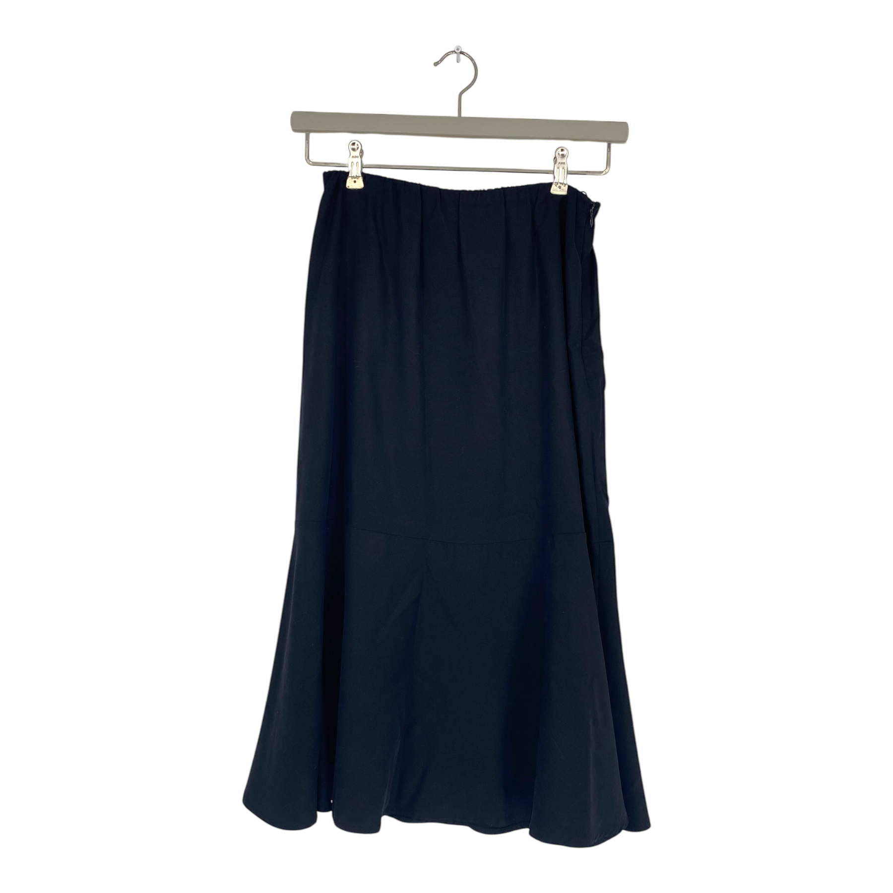 Kaiko mermaid skirt with a zip on the side and an elastic waistband. Fitted from the waist to the knee and wider from the hem.