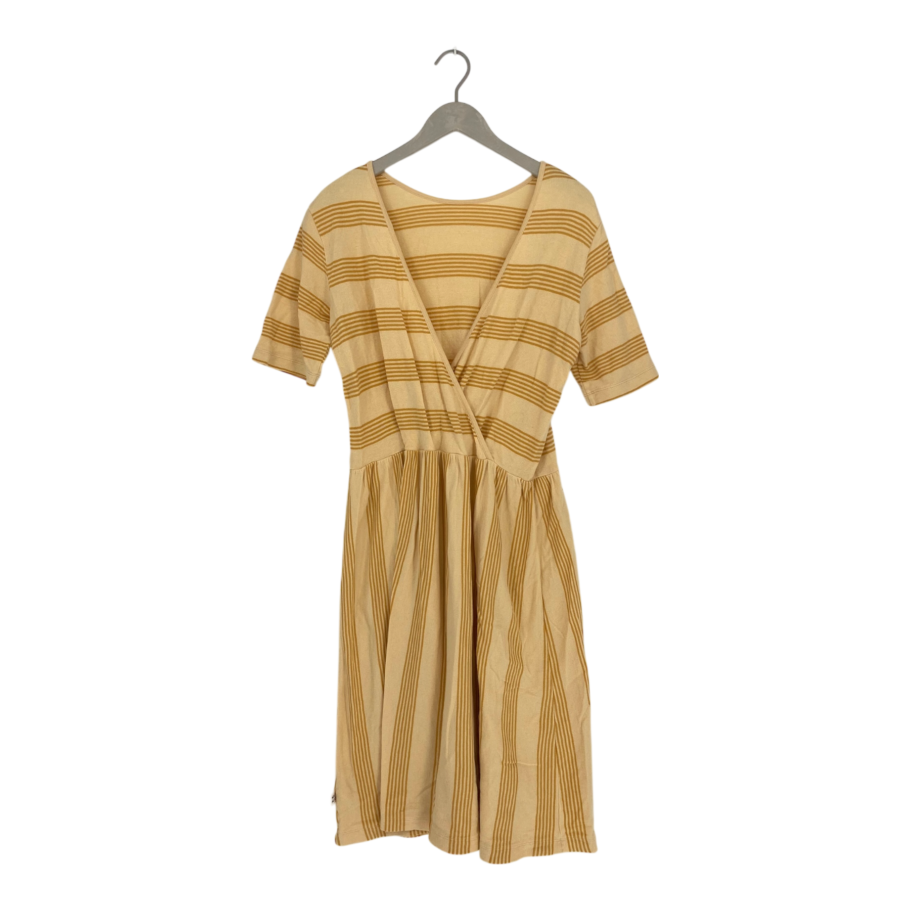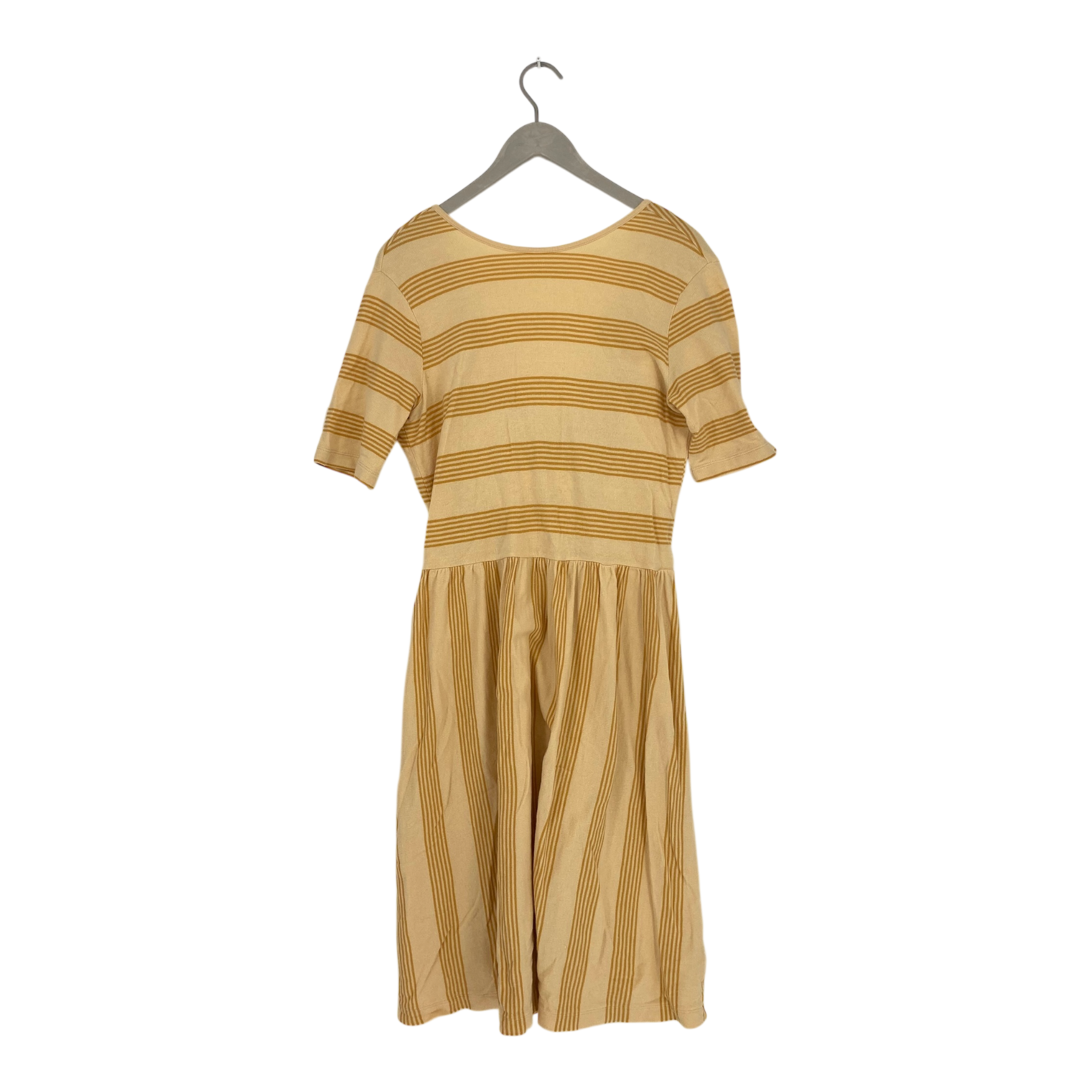 Mainio short-sleeved knit dress with orange stripes and an open back.